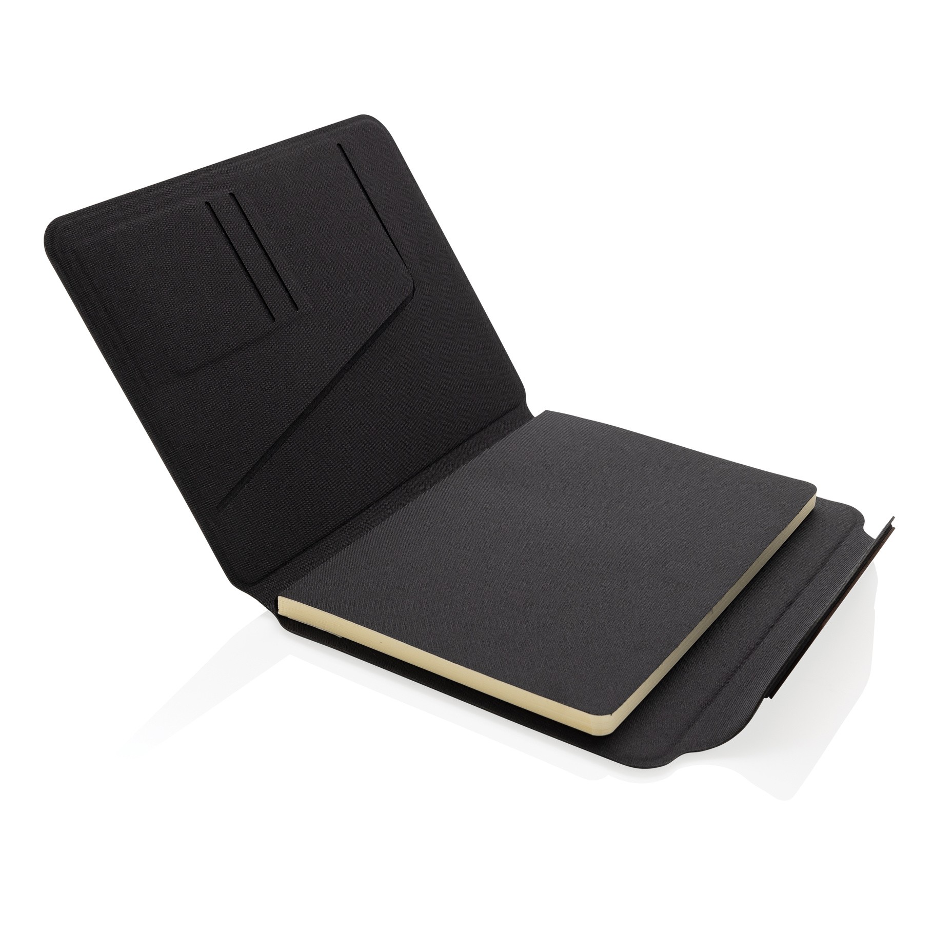 Le porte-documents A5 Teri en noyer et en rPET AWARE™ est l’alliance parfaite du style professionnel et de la fonctionnalité. Fabriqué en rPET avec le traçage AWARE et un emblème en bois de noyer pour plus d’élégance. Il est doté d’une fermeture magnétique qui permet de ranger vos documents essentiels en toute sécurité. À l’intérieur, vous trouverez deux fentes pour cartes de visite et une pochette pour documents A5. Le carnet A5, fabriqué avec du papier FSC® mix, comprend 64 feuilles (128 pages) de papier ligné de couleur crème. Le porte-documents est emballé dans une boîte cadeau FSC® mix Fefco 427, ce qui en fait un choix idéal pour un usage personnel ou un cadeau. Fabriqué en polyester recyclé avec le traceur AWARE™. 2 % des recettes de chaque produit vendu avec AWARE™ seront reversés à Water.org. Sans PVC. Fabriqué en Chine avec empreinte carbone de 1.64 kg équivalent CO².