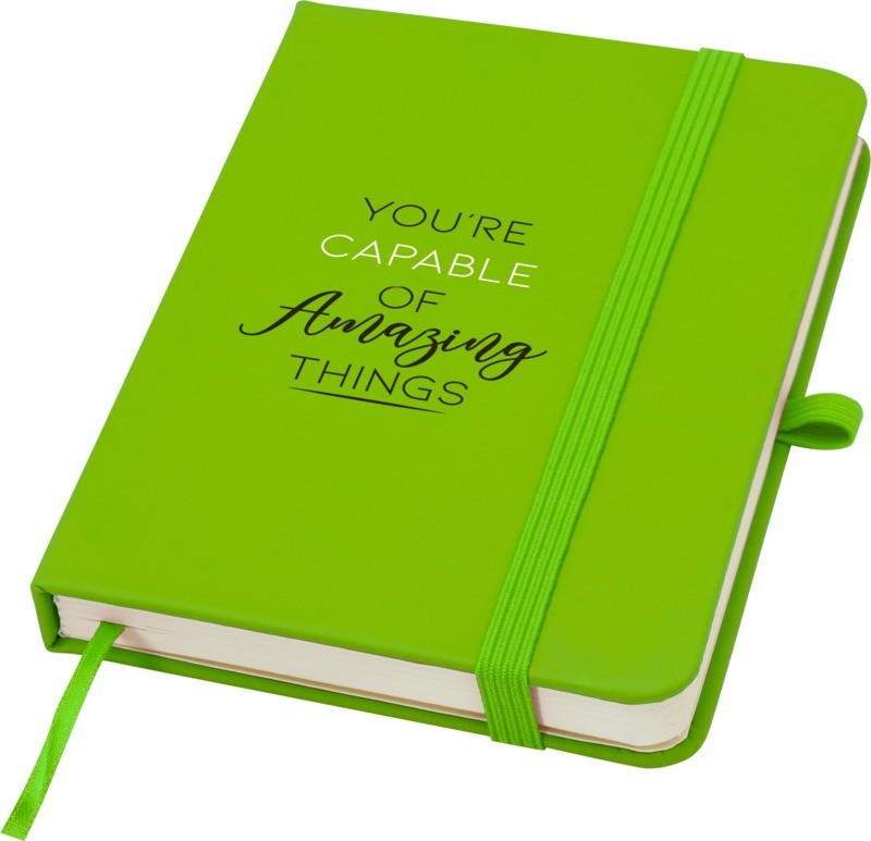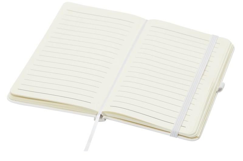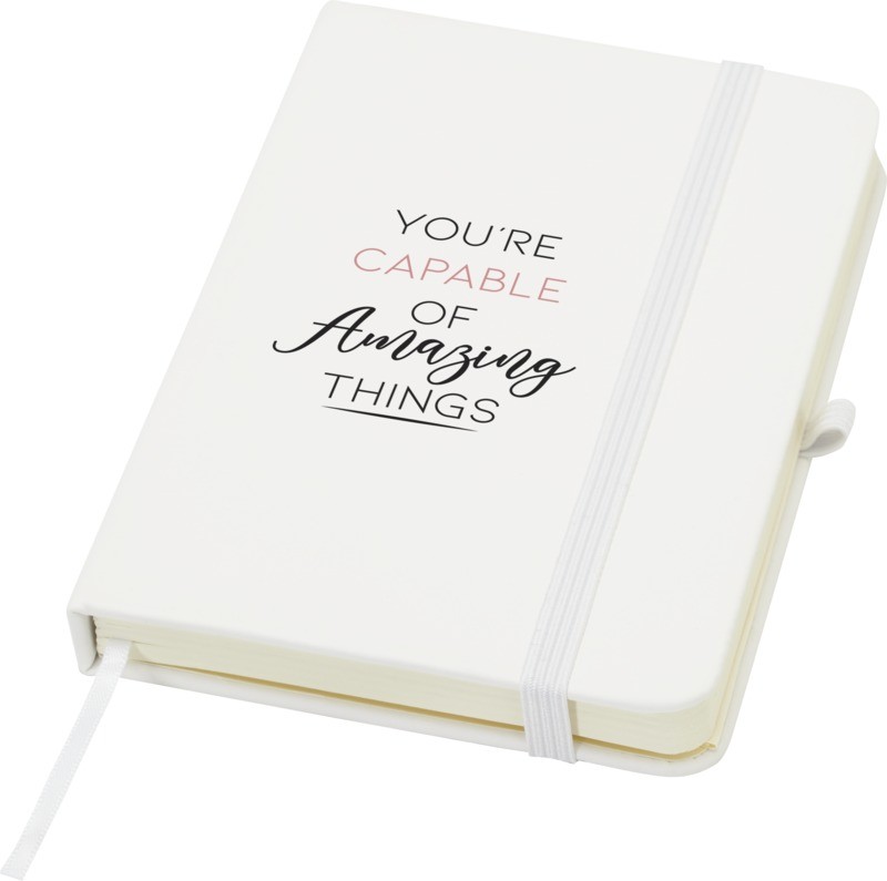 Le carnet à couverture rigide Spectrum Plus A6 à coins arrondis constitue non seulement un accessoire de bureau indispensable, mais aussi une excellente occasion de promouvoir votre marque. Ce carnet est pourvu d’une couverture douce et de 80 feuilles lignées de couleur crème de 70 g/m², idéales pour noter les pensées qui vous passent par la tête, comme du texte plus long. Ce carnet est doté d’une boucle pour stylo, d’une fermeture élastique, d’un ruban marque-page et d’une pochette en accordéon. Papier certifié FSC et fabriqué en Chine.
