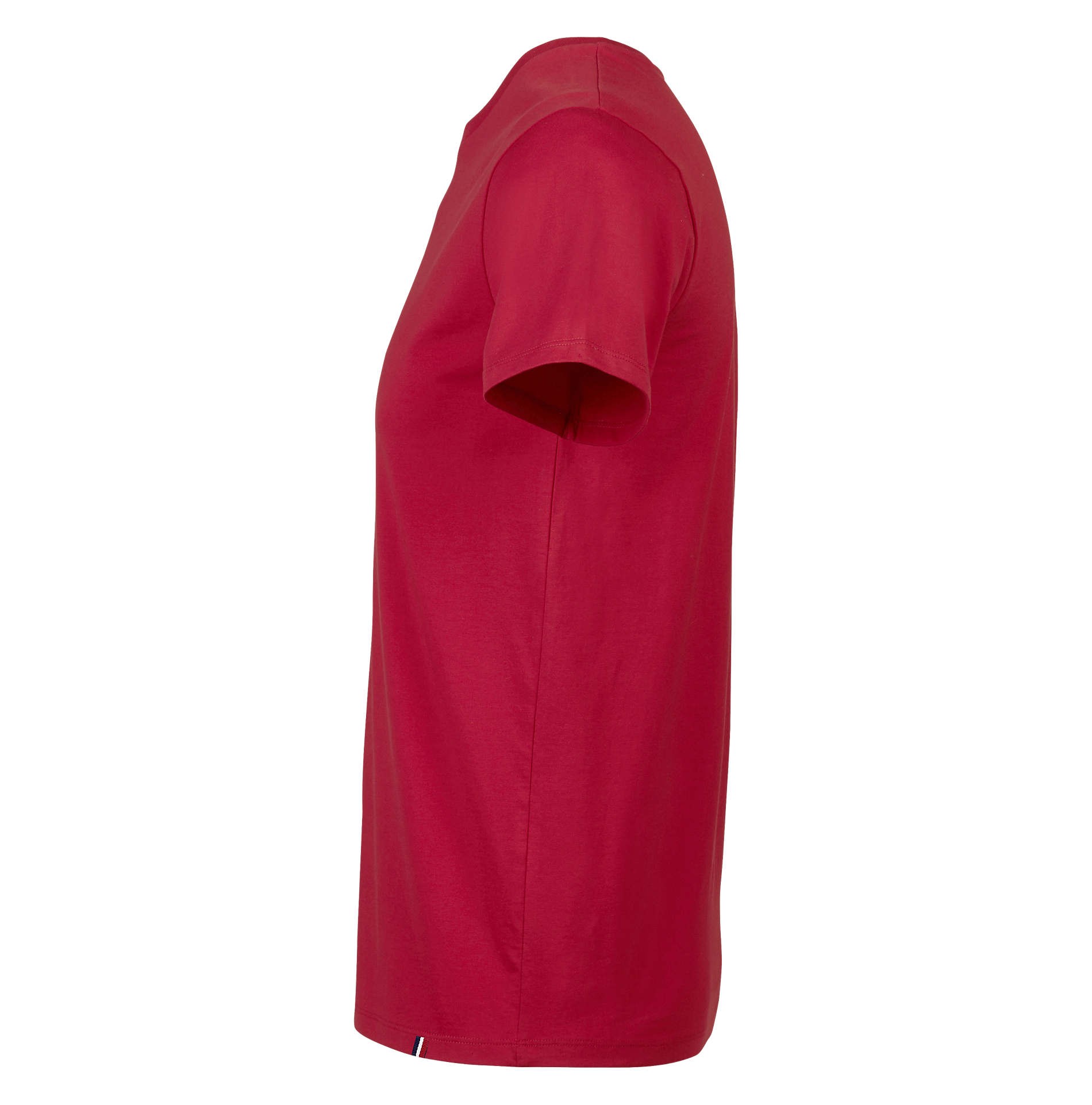 T-Shirt col rond jersey 150 100% coton peigné et bord côte 100% coton. Bande de propreté au col, coupe ajustée, coupé cousu et détail tricolore en bas du corps.