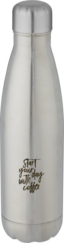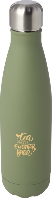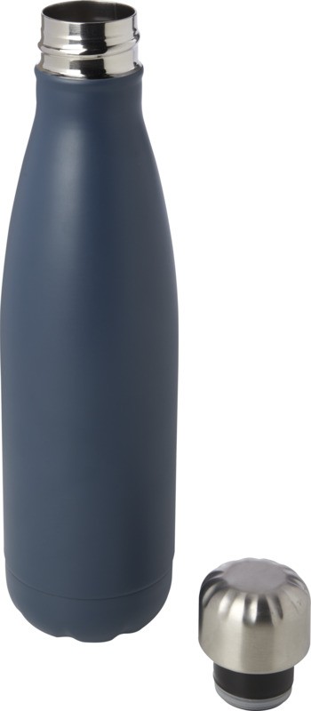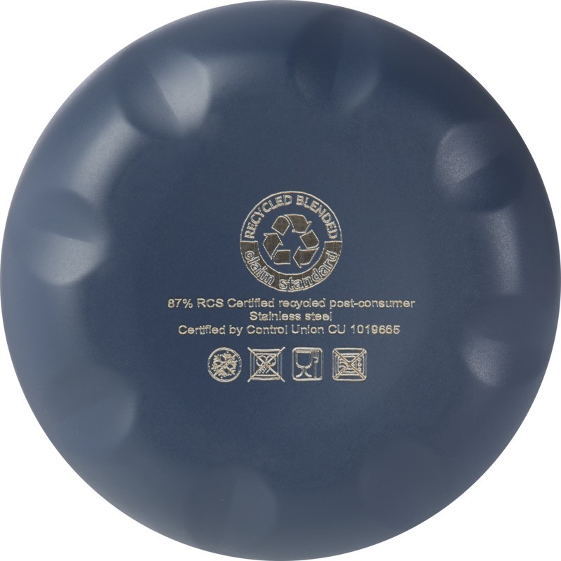 Bouteille en acier inoxydable recyclé certifiée RCS, isolée sous vide, au design emblématique, gardant les boissons chaudes ou froides pendant plusieurs heures. Dotée d’une base qui s’adapte à la plupart des porte-gobelets, cette bouteille d’eau à l’allure élégante est un article promotionnel parfait. Testé et approuvé en vertu de la législation allemande sur la sécurité alimentaire (LFGB), et testé pour la teneur en phtalates conformément à la réglementation REACH. Capacité de 500 ml. Livrée dans un coffret cadeau en carton recyclé. Recycled stainless steel, Plastique PP recyclé. Fabriqué en Chine.
