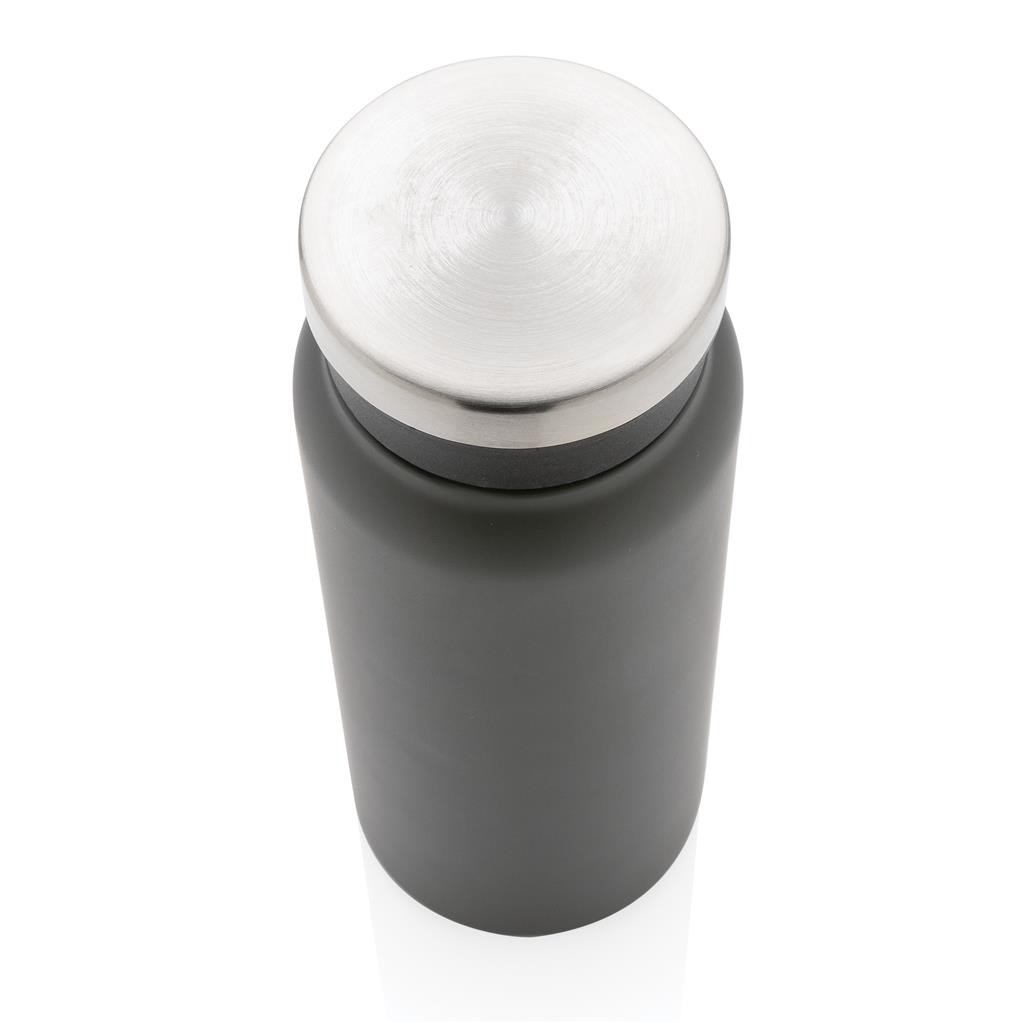 Bouteille 600ml double paroi en acier inoxydable recyclé RCS avec un couvercle vissé sécurisé qui présente une large ouverture pour faciliter le nettoyage et le remplissage. L’ajout d’un insert en PP garantit l’étanchéité de la bouteille. Garde vos boissons chaudes pendant 5 heures ou froides pendant 15 heures. Fabriquée avec des matériaux recyclés certifiés RCS (Recycled Claim Standard). La certification RCS garantit une chaîne d’approvisionnement entièrement certifiée des matériaux recyclés. Contenu recyclé total : 77% sur la base du poids total de l’article. Sans BPA. Boîte cadeau en kraft certifiée FSC® incluse.