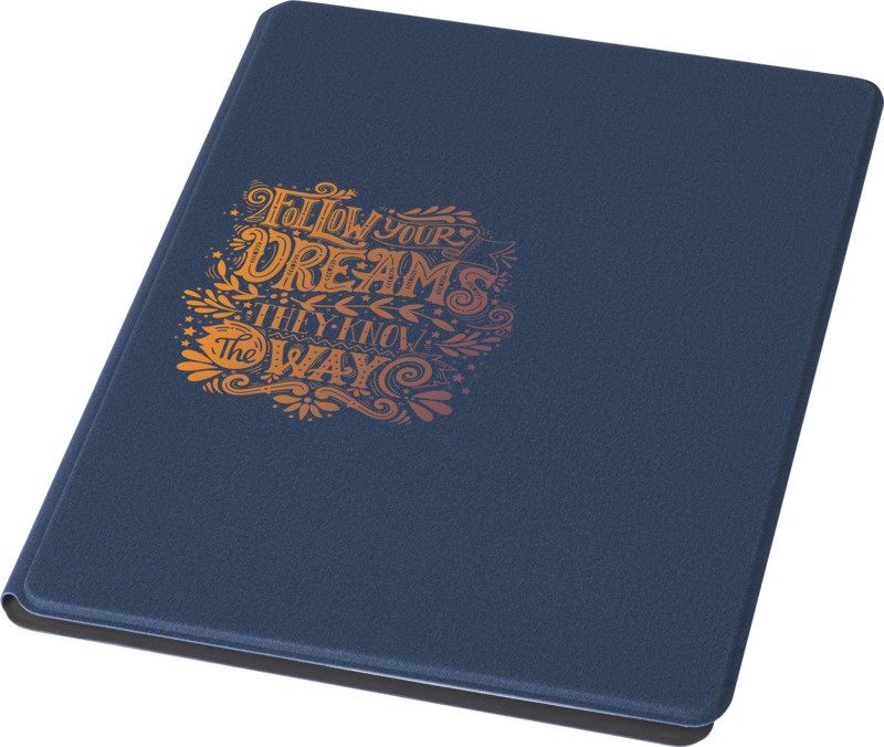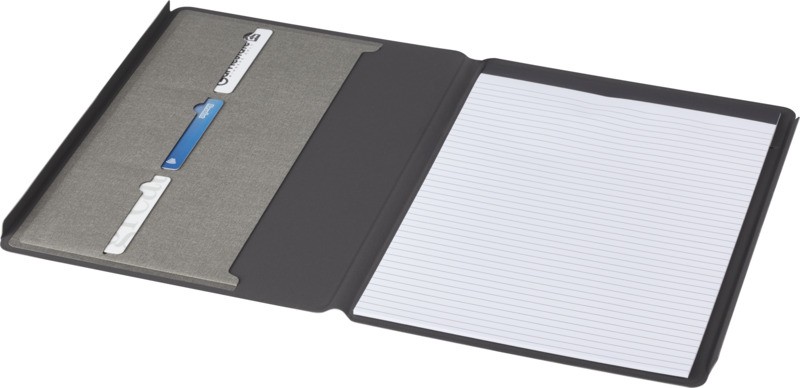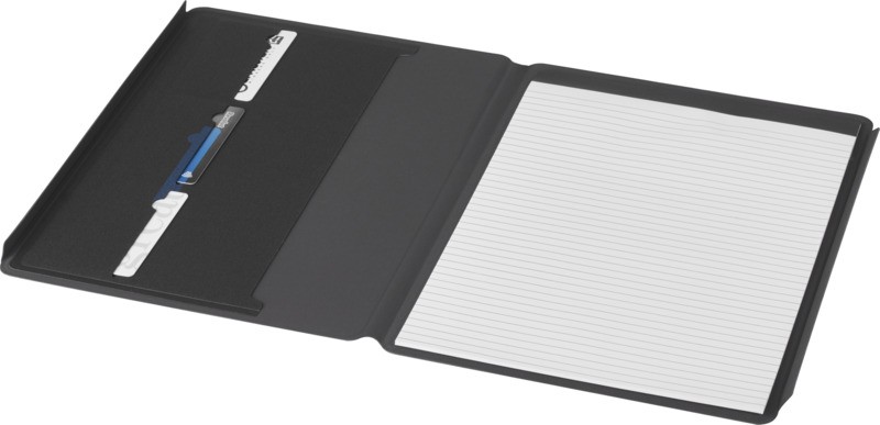 Le porte-documents Kunveno certifié RCS est partiellement fabriqué à partir de polyester post-consommation, ce qui en fait un choix plus durable puisqu’il contribue à réduire l’utilisation de matières premières vierges. Il est doté d’une fermeture aimantée et de 20 feuilles blanches lignées avec du papier recyclé de 80 g/m² provenant de sources durables. FSC certified paper. Fabriqué en Chine.