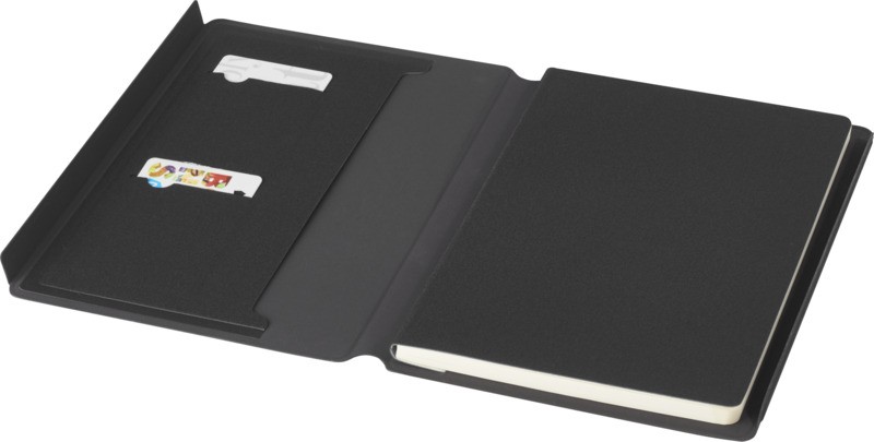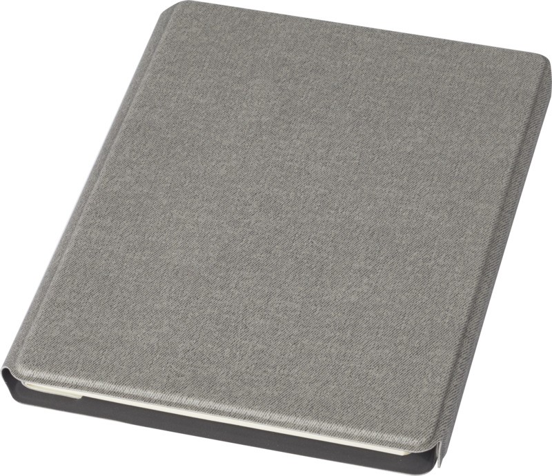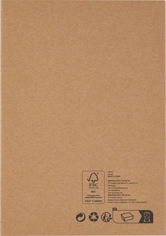 Le porte-documents Notu certifié RCS est partiellement fabriqué à partir de polyester recyclé post-consommation, ce qui en fait un choix plus durable, puisqu’il contribue à réduire l’utilisation de matières premières vierges. Il est doté d’une fermeture aimantée, d’une pochette accordéon et de 64 feuilles lignées de couleur crème avec du papier recyclé de 80 g/m² provenant de sources durables. FSC certified paper. Fabriqué en Chine.