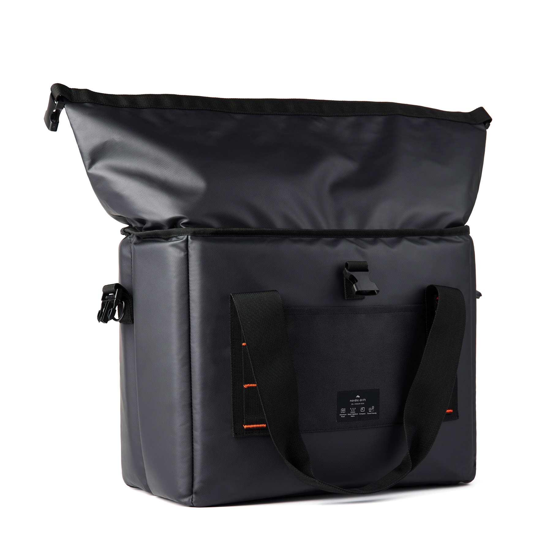 Un sac isotherme spacieux avec fermeture à enroulement flexible, offrant un volume de rangement réglable de 15 à 22 litres. Fabriqué à partir de 34 % de polyester recyclé certifié (RCS) avec un revêtement PU déperlant pour un nettoyage facile. Son isolation PEVA extra épaisse maintient le contenu à la bonne température pendant longtemps. Le système de transport 2 en 1 comprend des poignées confortables et une bandoulière réglable et amovible. Des boucles compatibles avec les mousquetons permettent d’attacher facilement vos essentiels, tandis qu’une poche extérieure ouverte et un décapsuleur intégré ajoutent une touche pratique à toutes vos aventures. Tous les produits Nordic Drift sont testés pour garantir leur qualité. Parce que nous croyons fermement en la performance et la durabilité de notre équipement, chaque article est couvert par une garantie de 5 ans contre les défauts de fabrication.