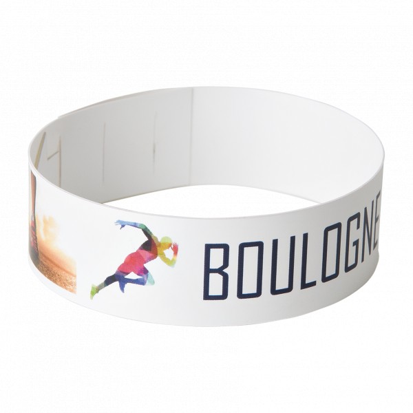Bracelet indéchirable en papier polyéthylène. Un marquage quadri copie laser 1 face et frais techniques inclus.