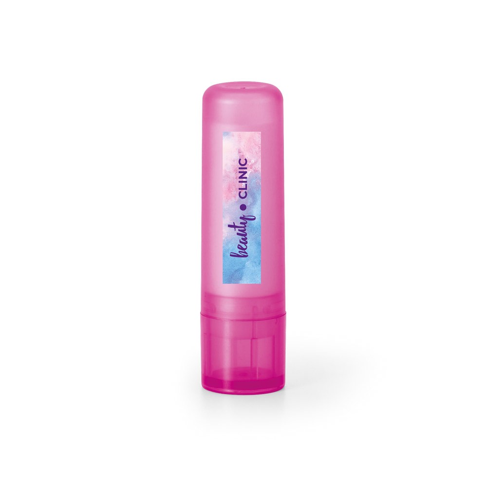Baume à lèvres en PS et PP, disponible en différentes couleurs. Mentions légales disponibles en: PT; EN; ES; FR; IT; DE; PL; CZ; SK; RO; RS; HR; NL; HU; DK; NO; SV; BG. Fabriqué en Chine.