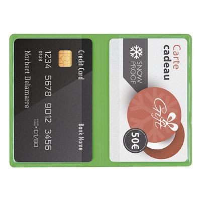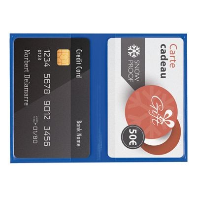 Etui 2 cartes avec poches horizontales en PVC gomme lisse. Imitation cuir et marbrée sur demande, possibilité de marquage : sérigraphie, embossage et quadri numérique (sur demande). Fabriqué en France.