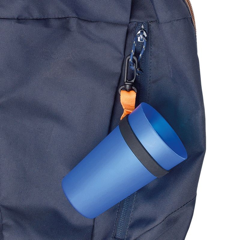 Ne pensez plus à votre gobelet. Il attend patiemment la prochaine rasade rafraichissante, accroché à votre sac à dos ! Porte gobelet avec anneau silicone, lien polyester couleur et mousqueton noir tournant polyamide (PA). Uniquement sans marquage.
