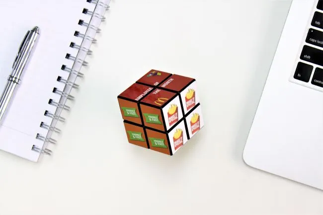 Le Rubik’s Cube version « débutant » est une alternative intéressante car moins chère mais tout aussi efficace en termes de branding. Adapté aux larges campagnes publicitaires. Nos cubes sont produits à 100 % à partir de plastique recyclé post-consommation. Nos cubes peuvent être imprimés à l’encre végétale, avec réduction immédiate de produits chimiques. Un marquage sur toutes les faces en quadri inclus.