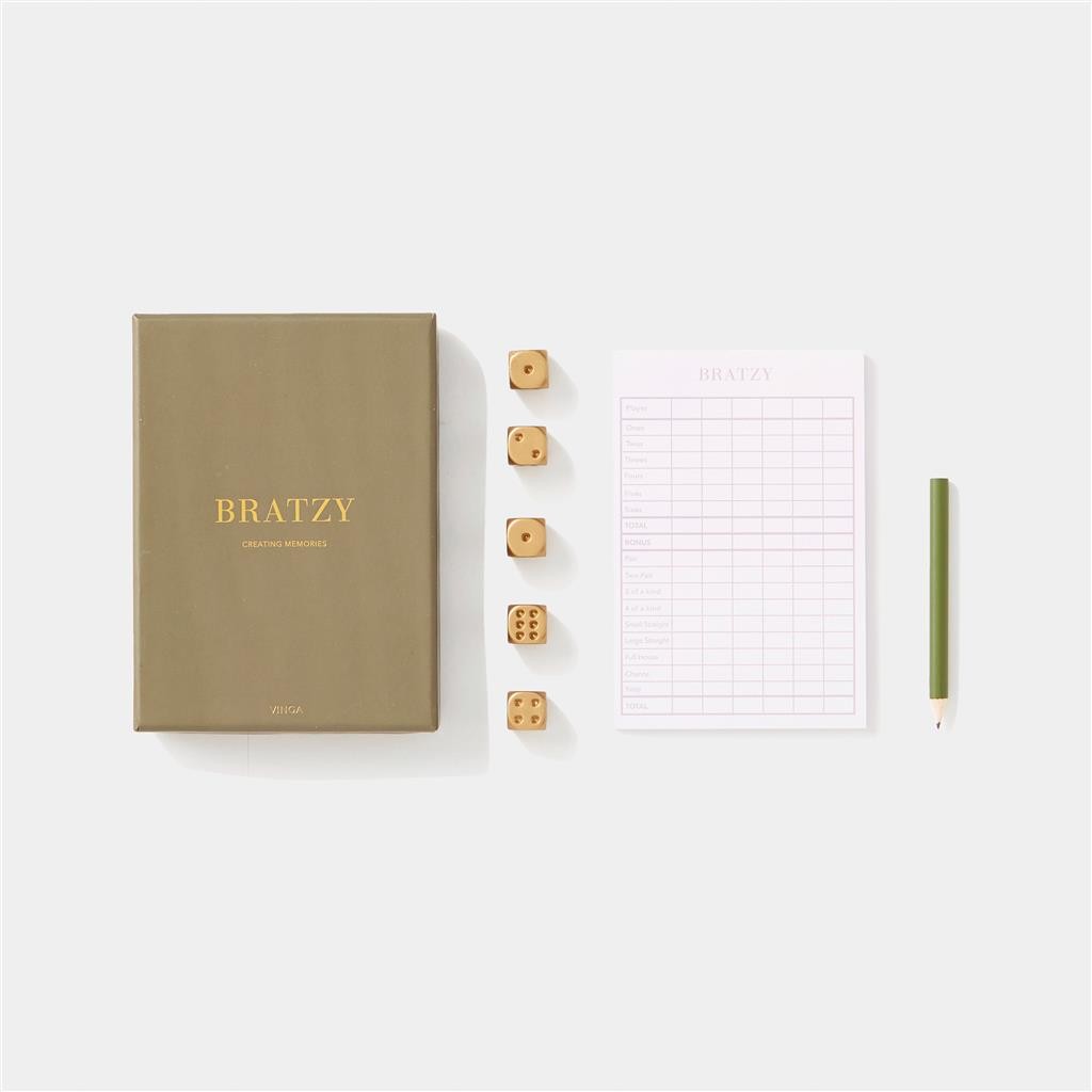 C’est le Yatzy dans un emballage luxueux ! Avec des dés en or, et un crayon tout aussi exclusif, nous faisons passer le Yatzy au Bratzy. Ce jeu est livré dans une boîte élégante, sur laquelle est imprimé un texte doré, ce qui permet de l’offrir ou de l’utiliser comme un joli décor sur la table basse.