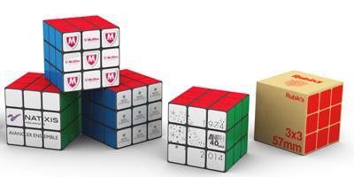 Le Rubik’s Cube original et best-seller de la gamme. Iconique et doté de 6 visages et de 54 sections imprimables, le Rubik’s 3×3 est idéal pour votre promotion de marque. Le support en option augmente sa visibilité sur le bureau et le transforme en objet de collection. Nos cubes sont fabriqués avec 100 % de plastique recyclé post-consommation. Nos Rubik’s Cubes 3×3 personnalisés peuvent être livrés avec une boîte en papier 100 % recyclé. Nos cubes peuvent être imprimés avec de l’encre végétale, ce qui réduit l’utilisation de produits chimiques. Un marquage sur toutes les faces en quadri inclus.