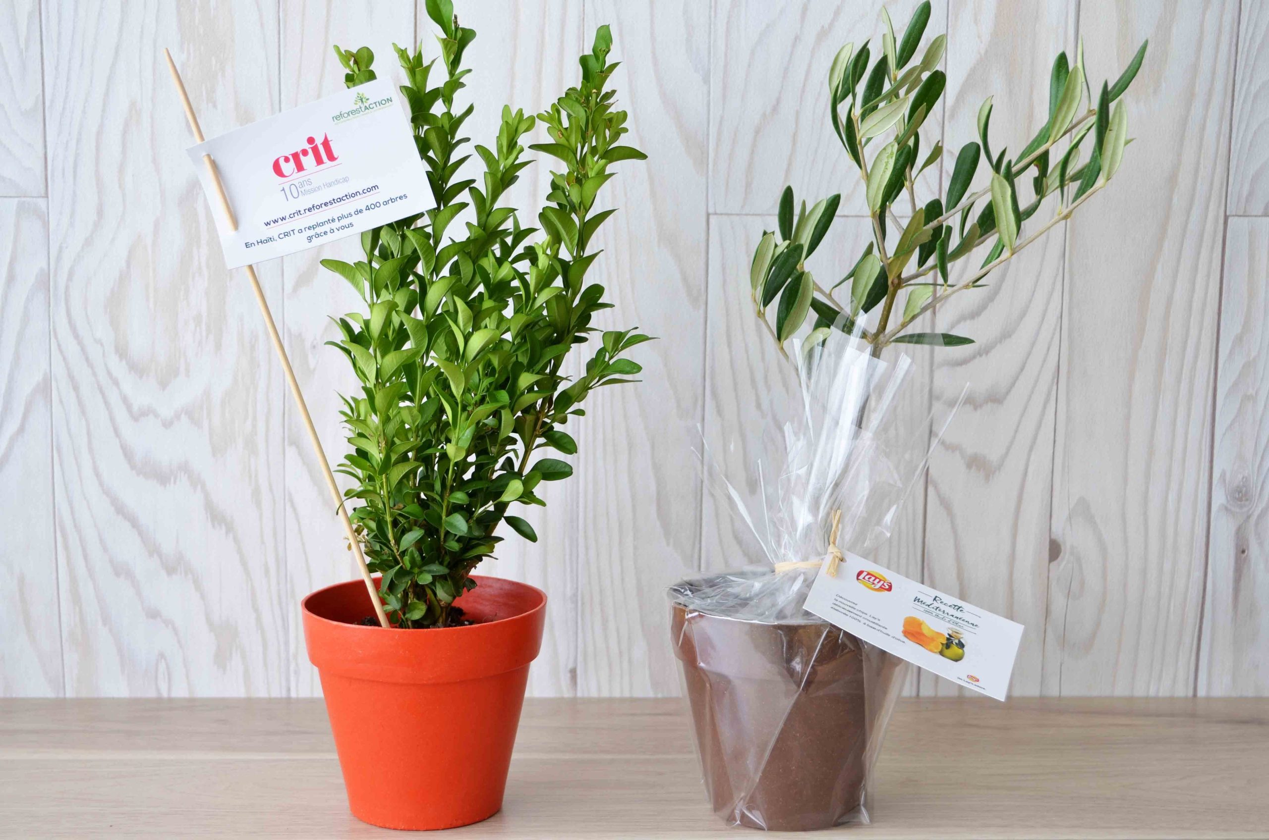Plant d’arbre en pot bambou 100% biodégradable et écologique de 10 cm avec arbre résineux (pin sylvestre, pin maritime, pin noir, pin de Corse, pin de Calabre, pin d’Autriche,…) ou feuillus (hêtre, chêne, charme,…sur demande) ou prestige (olivier, cèdre, séquoia, sur demande). Impression sur étiquette en quadrichromie recto/verso et frais techniques inclus sur pique en bois, possibilité de marquage sur le pot en option.