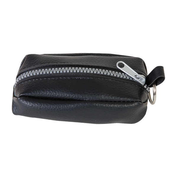 Bourse zippée avec porte clés en PVC façon cuir. Fabriqué en Chine.