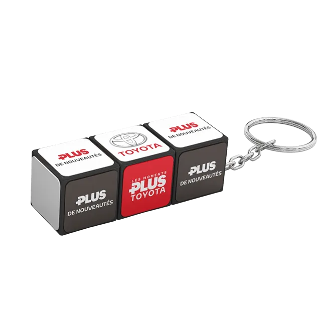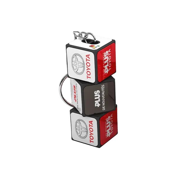 Entièrement personnalisable, le Rubik’s BK est conçu dans les mêmes dimensions que le Rubik’s Flashlight. Les 3 cubes peuvent tourner, laissant à l’utilisateur la possibilité de reconstituer votre message ou vos images. Nos cubes sont produits à 100 % à partir de plastique recyclé post-consommation. Nos cubes peuvent être imprimés à l’encre végétale, avec réduction immédiate de produits chimiques. Un marquage sur toutes les faces en quadri inclus.