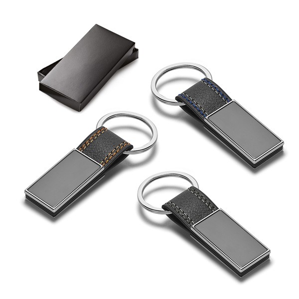 Porte-clés. Simili cuir et métal. Livré dans coffret cadeau. Fabriqué en Chine.