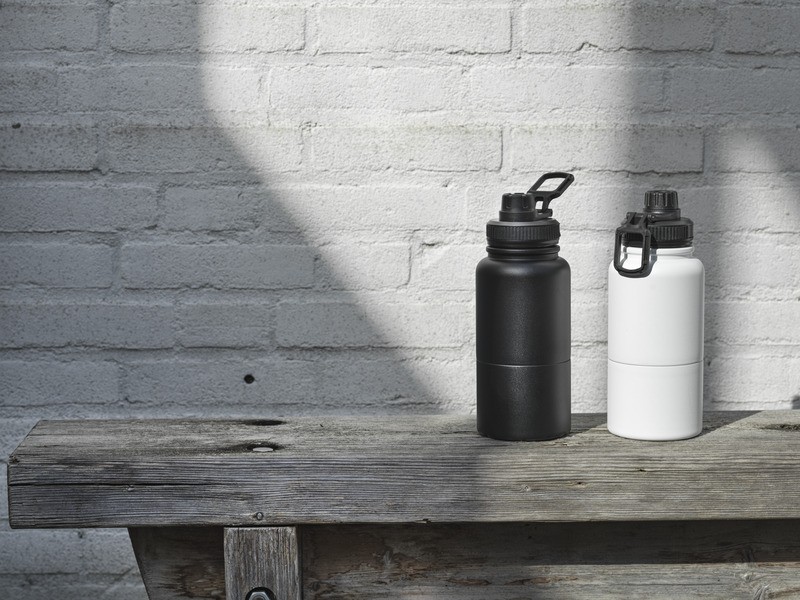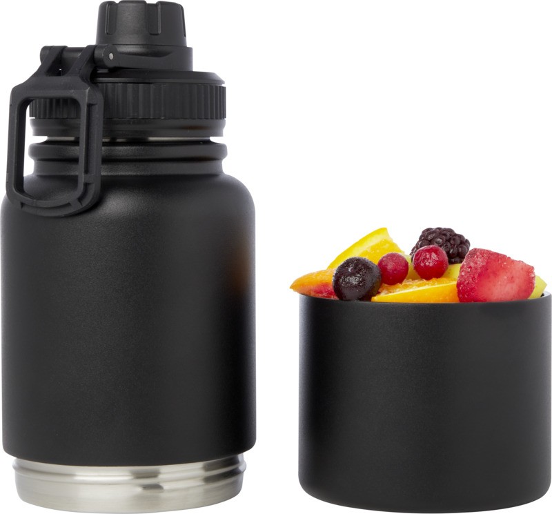 Bouteille isotherme en acier inoxydable certifié RCS, multi-usages, avec récipient de stockage amovible. La partie supérieure de la bouteille comporte un thermos isolé en cuivre d’une capacité de 530 ml, qui permet de conserver les boissons chaudes ou froides pendant plusieurs heures. La partie inférieure est un récipient à double paroi pouvant contenir jusqu’à 340 ml. Elle peut être utilisée comme gobelet pour vos boissons froides préférées, ou pour ranger des snacks ou d’autres petits objets. Livrée dans un coffret cadeau en carton recyclé. RCS certified recycled stainless steel, Plastique PP recyclé. Fabriqué en Chine.
