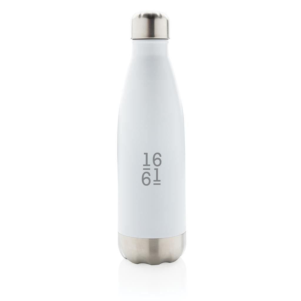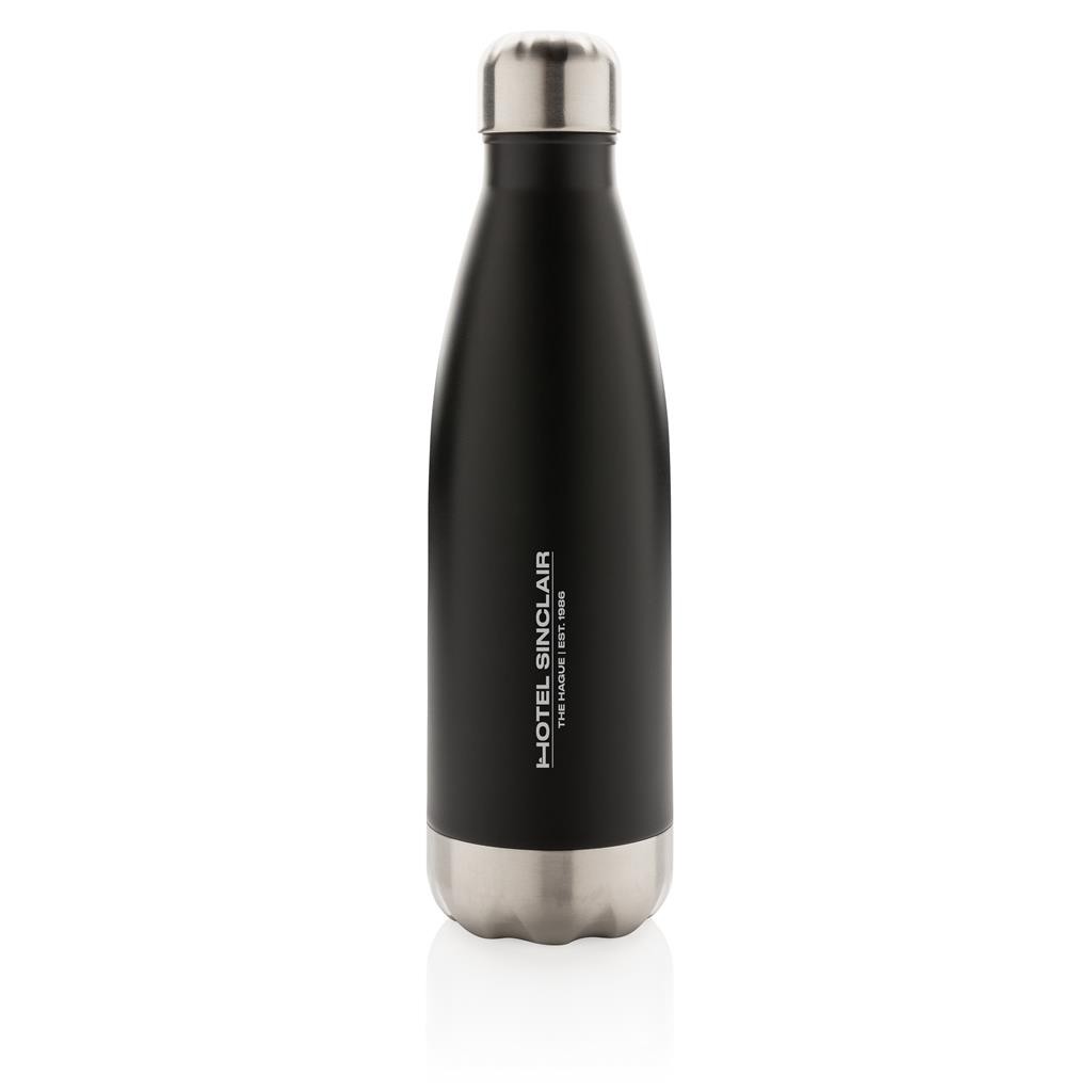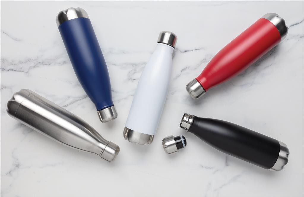 Bouteille 500ml en acier inoxydable avec vide d’air pour garder vos boissons chaudes 5h et froides 15h. Fabriqué en Chine.