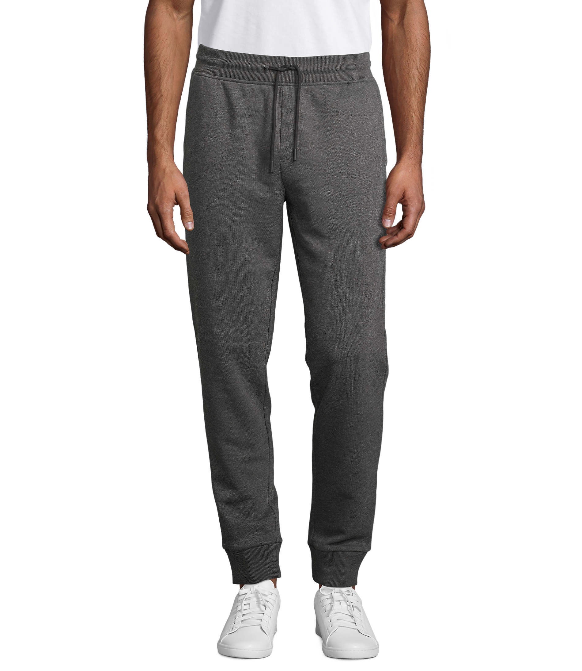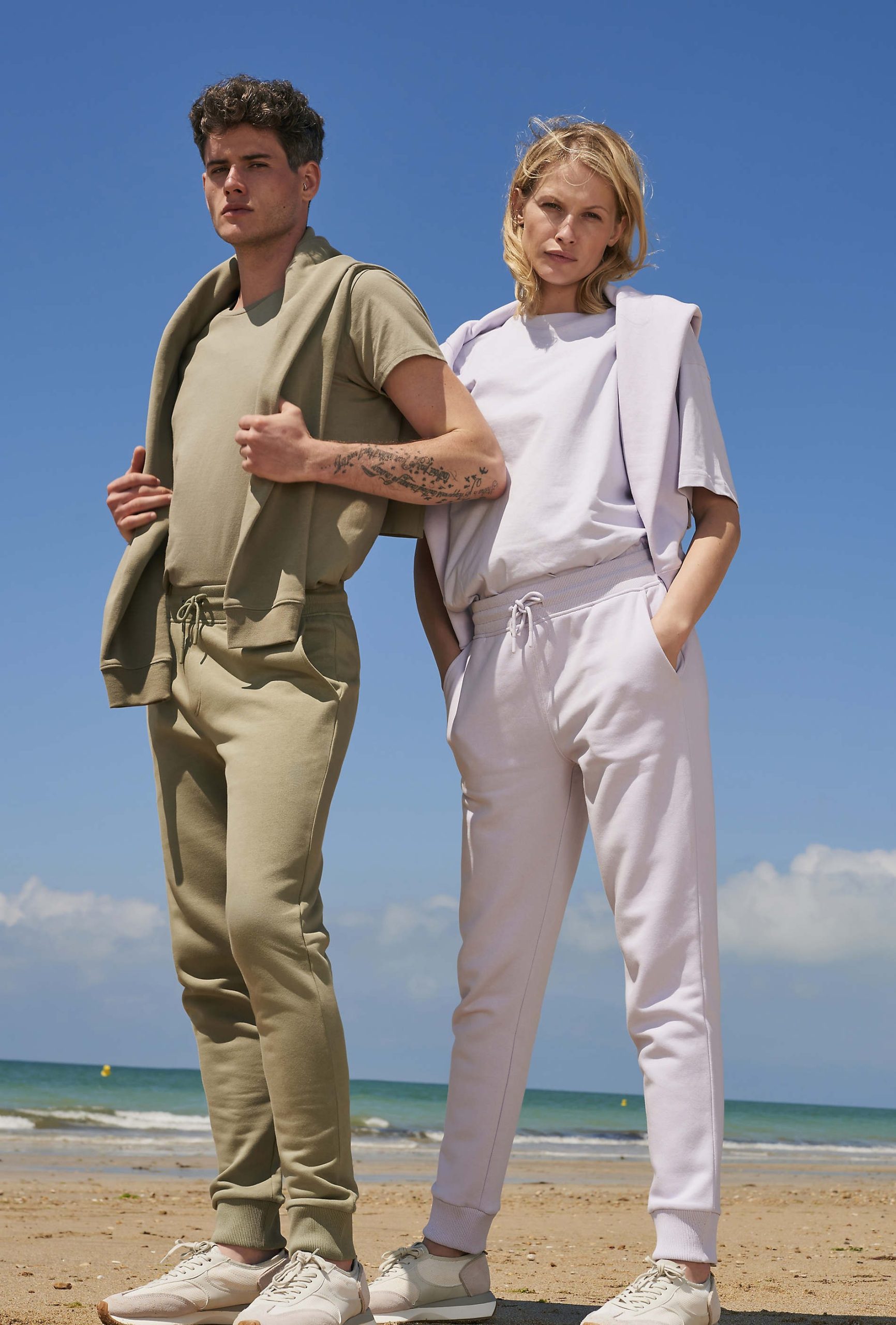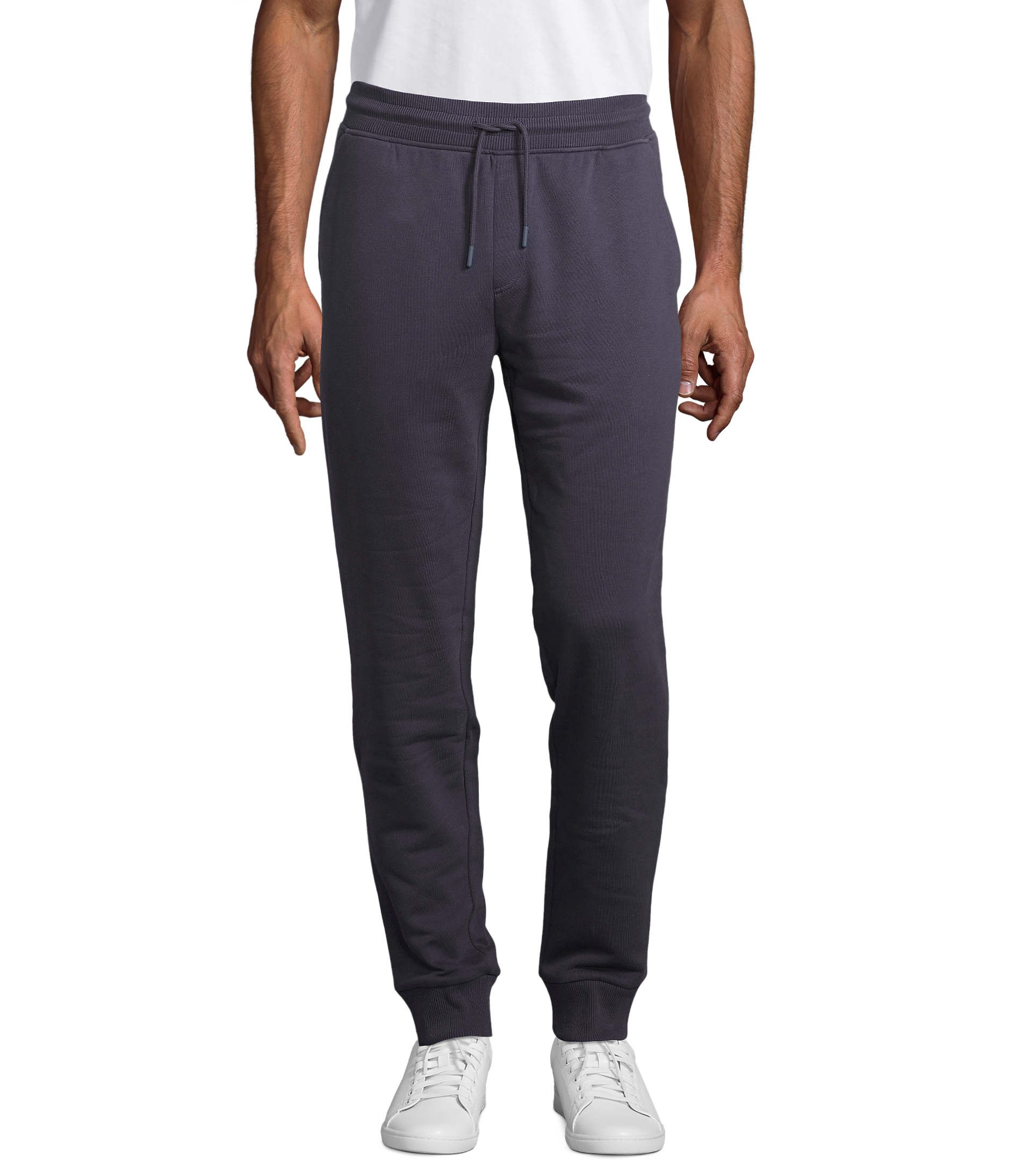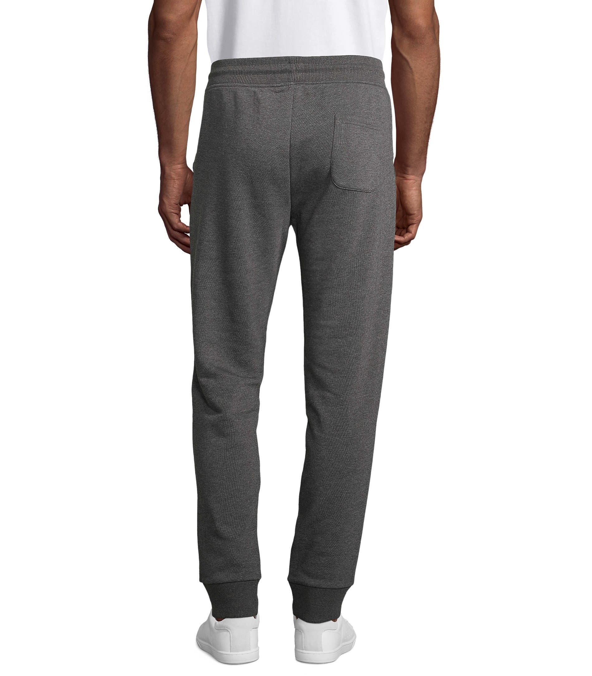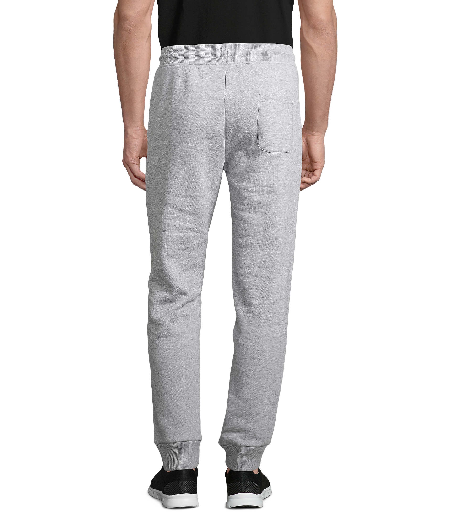 Molleton gratté 280gr/m², 85% coton peigné biologique – En cours de conversion – 15% polyester recyclé (82 % coton bio / 13 % polyester recyclé / 5 % viscose : 360 Gris chiné – 70 % coton bio / 30 % polyester recyclé : 348 Anthracite chiné). 2 poches à l’italienne, 1 poche plaquée arrière, bord côte 2X2 taille et bas de jambe. Cordon de serrage rond avec embouts ton sur ton.