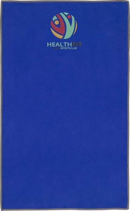 La serviette de sport Pieter absorbe très bien, est légère, sèche rapidement et le tissu est durable et extrêmement doux. Lorsque la serviette est pliée et fixée à l’aide de l’élastique, elle est réduite à une petite taille, ce qui permet de l’emmener à la salle de sport, à la piscine, ou de l’utiliser en randonnée ou en camping. D’une taille de 100 x 180 cm, la serviette est composée à 90 % de polyester recyclé certifié GRS et à 10 % de nylon. Elle peut être lavée en machine à 40 °C. Livrée avec une pochette de rangement (15,5 x 10 cm) en plastique PET recyclé, qui offre une surface idéale pour l’impression d’un logo. 10% Nylon et 90% Polyester recyclé certifié GRS, 200 g/m². Fabriqué en Chine.