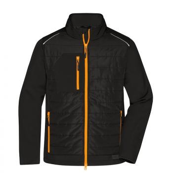 Veste technique en RPET homme 100% polyester recyclé 280gr/m², rembourrage 100% polyester Dupont Sonora, fermetures zippées contrastées YKK et ouverture jeannette. 2 poches latérales zippées, poche poitrine verticale zippée, poche intérieure, éléments réfléchissants à l’avant et à l’arrière. Inserts contrastés en soft Shell aux manches et côtés, disponible également en version femme sur demande.