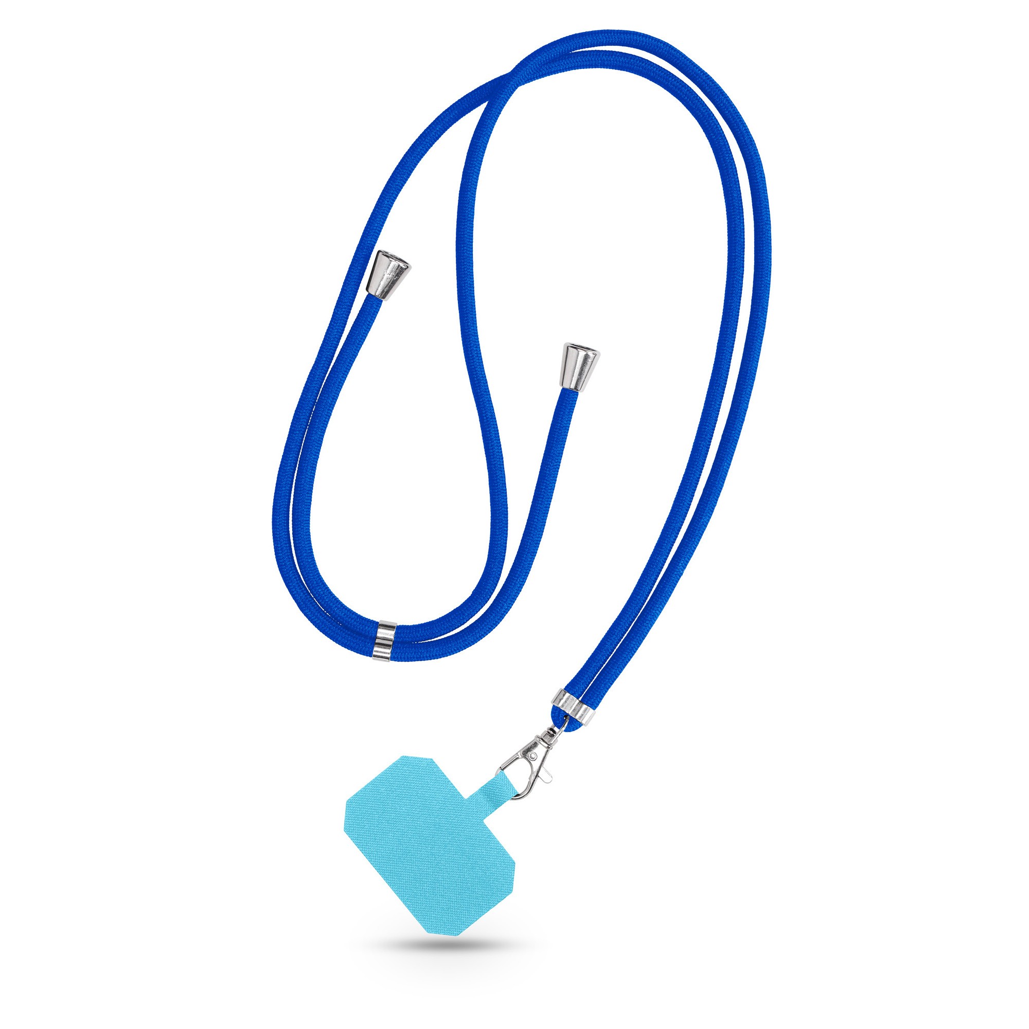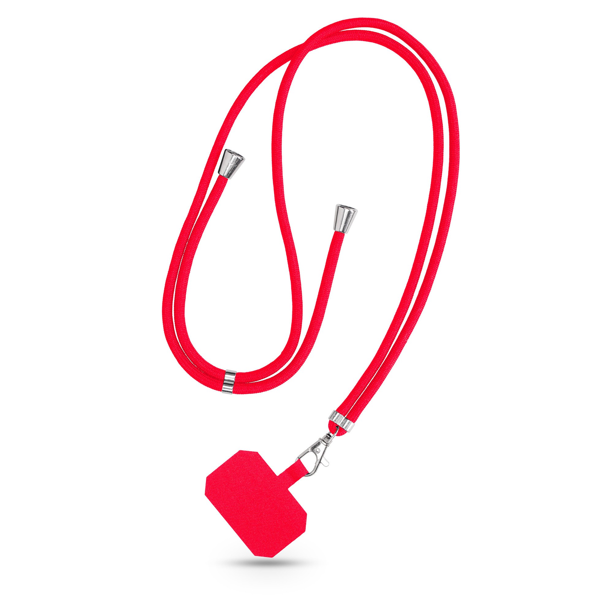 Ce cordon en RPET permet de porter son téléphone en bandoulière ou autour du cou avec mousqueton métal. Pad en tissu avec marquage 1 couleur 1 position inclus (hors frais techniques).