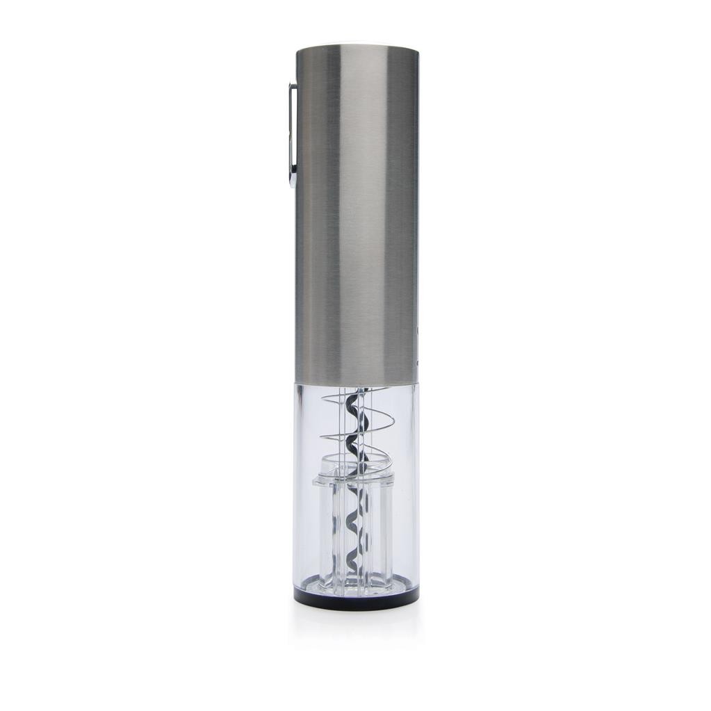 Tire-bouchon électrique moderne avec batterie 3.6V au lithium et lumière bleue intégrée. Ouvrez votre bouteille de vin facilement en 8 secondes. Avec câble micro USB pour charger l’appareil. Emballé dans un coffret. Fabriqué en Chine.