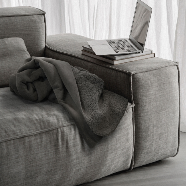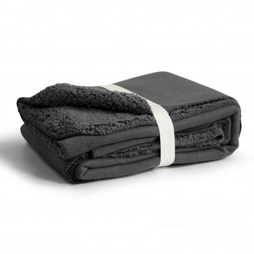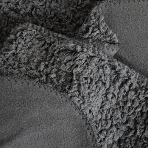 Plaid double épaisseur contrecollé: une face sherpa, une face suédine, 100% microfibre PET recyclé 420gr/m².