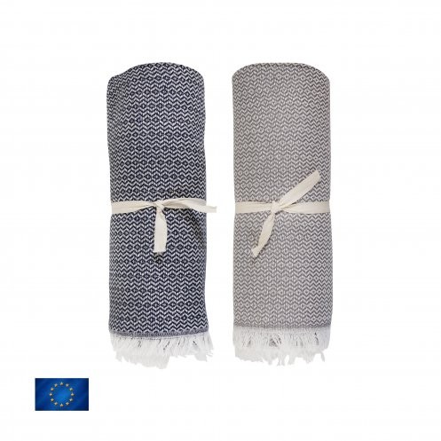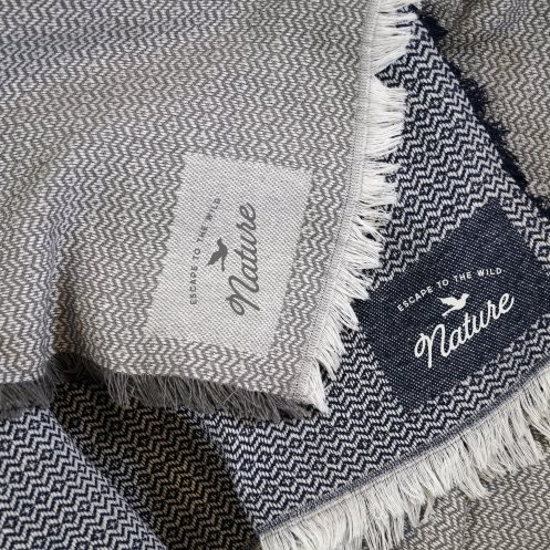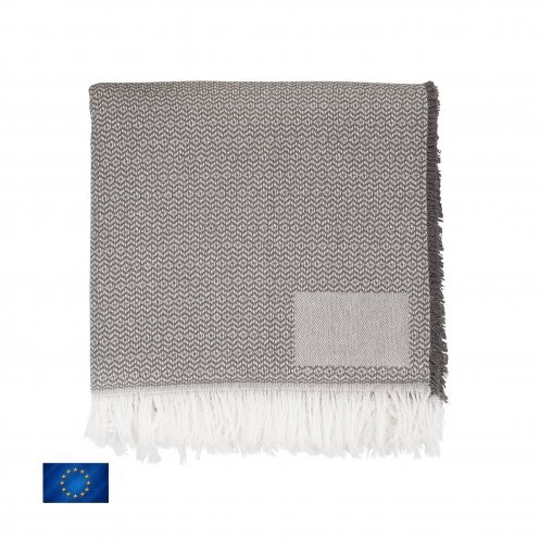 Plaid 65% coton recyclé / 35% PET recyclé – 320gr/m². Matière première issue de filière certifiée GRS.