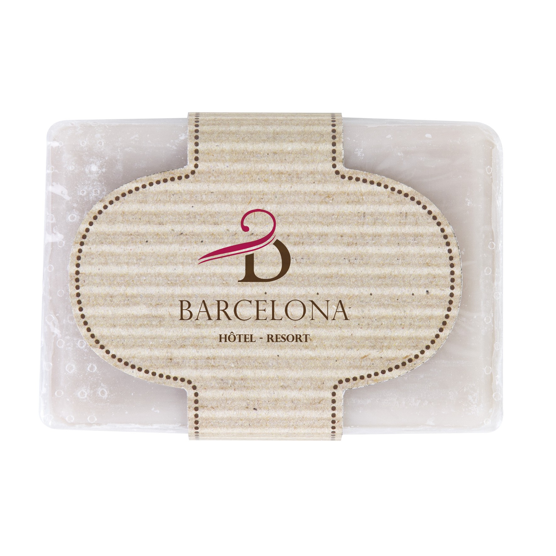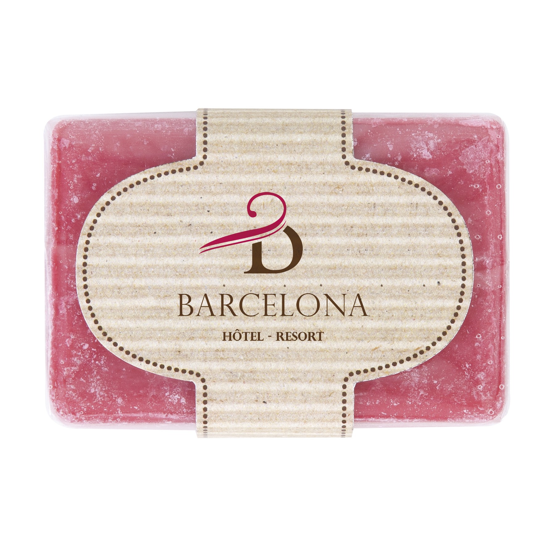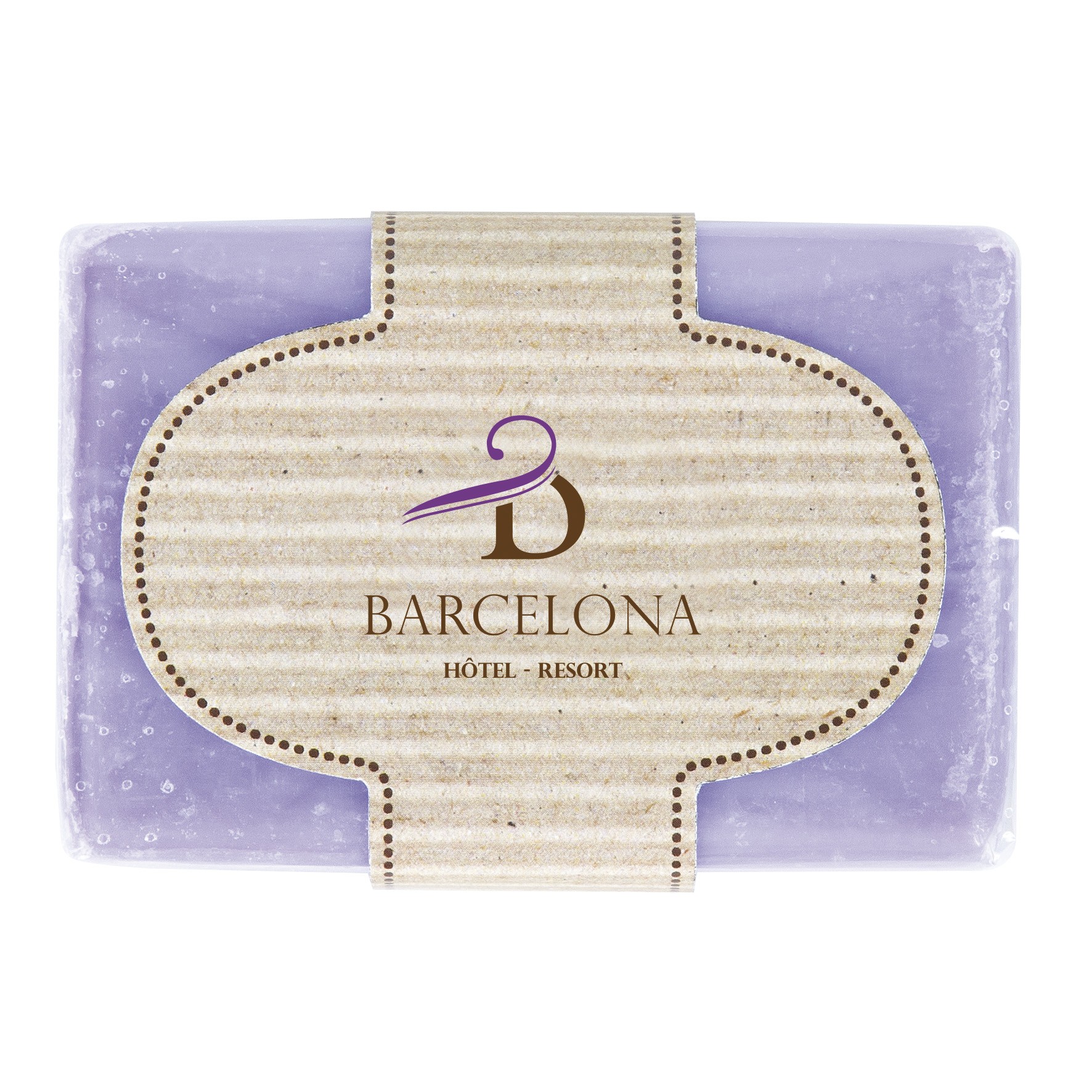 Savon de 100gr pur végétal sous cellophane + étui carton. Un marquage 1 couleur sur carton et frais techniques inclus.
