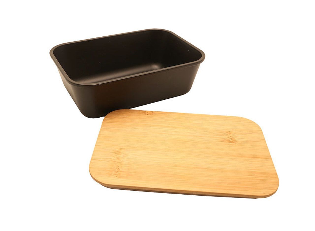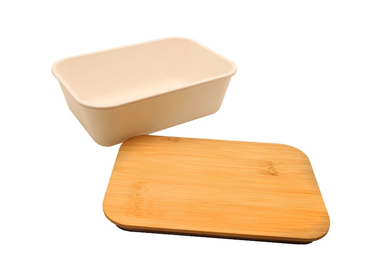 Boîte déjeuner (lunch box) simple compartiment. Contenant en polypropylène. Couvercle en bambou avec joints en silicone pour une meilleure étanchéité. Compatible (sans le couvercle) avec lave-vaisselle (50° max), congélateur et micro-ondes (Sans le couvercle à 100° et 2 minutes max). Contenance : 1L. Matériaux conformes aux toutes dernières normes alimentaires. Elégant couvercle en bambou pouvant aussi servir de planche à découper. Compatibilité lave-vaisselle, congélateur et micro-ondes. Etanchéité améliorée grâce aux joints en silicone. Convient autant pour les déjeuners des adultes que pour les goûters des enfants. Fabriqué en Chine.