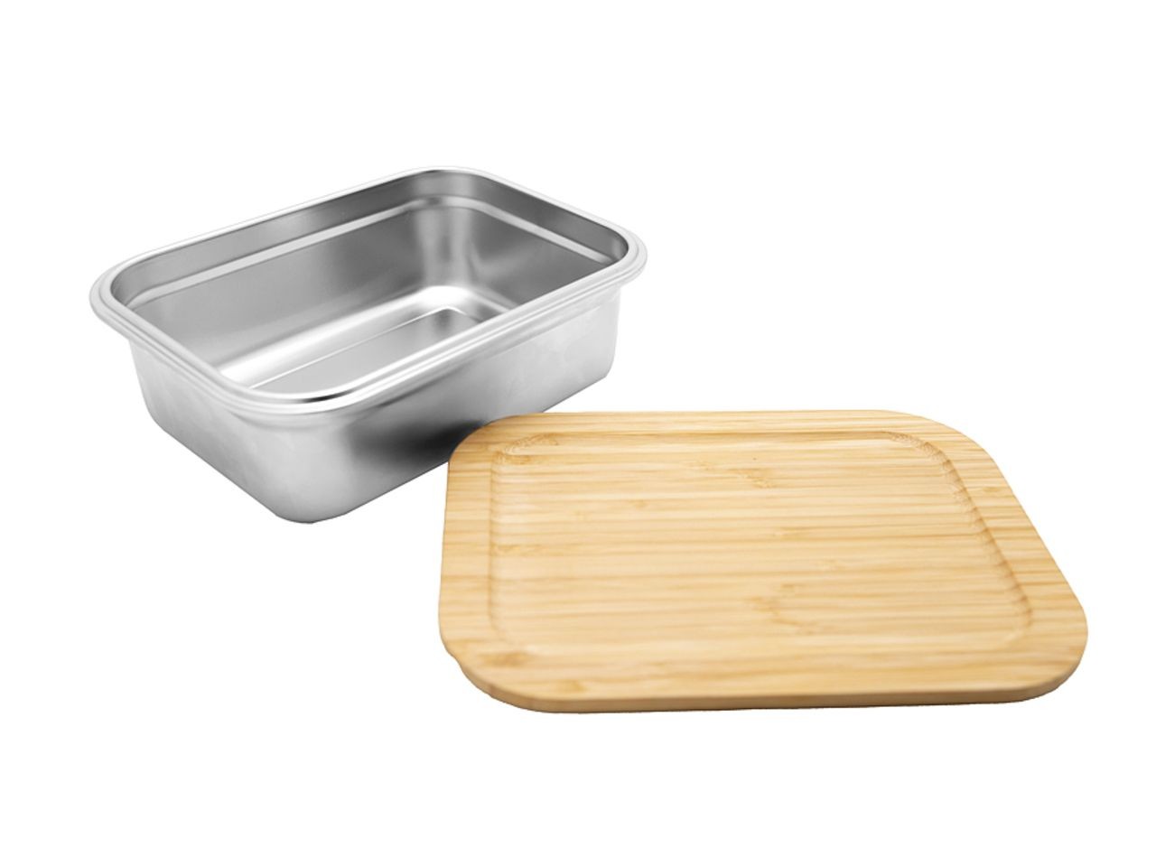 Boîte déjeuner (lunch box) simple compartiment. Contenant en acier inoxydable 304 conforme aux normes de contact alimentaire ayant la capacité de passer dans les fours à micro-ondes (Sans le couvercle à 100° et 2 minutes max). Couvercle en bambou avec joints en silicone pour une étanchéité parfaite. Compatible également (sans le couvercle) avec lave-vaisselle (50° max) et congélateur. Contenance : 1,2L. Matériaux conformes aux toutes dernières normes alimentaires. Acier inoxydable spécialement conçu pour pouvoir réchauffer vos plats au micro-ondes en toute sécurité. Compatibilité aussi lave-vaisselle et congélateur et étanchéité parfaite grâce aux joints en silicone. Elégant couvercle en bambou et grande contenance. Fabriqué en Chine.