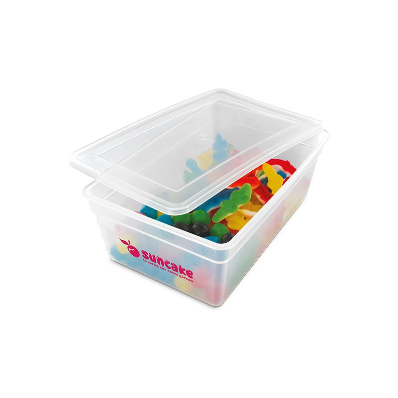 Boîte plastique transparente avec couvercle étanche et capacité 2 L. Matière alimentaire, passe au micro-ondes et au lave-vaisselle. Fabriquée en France.