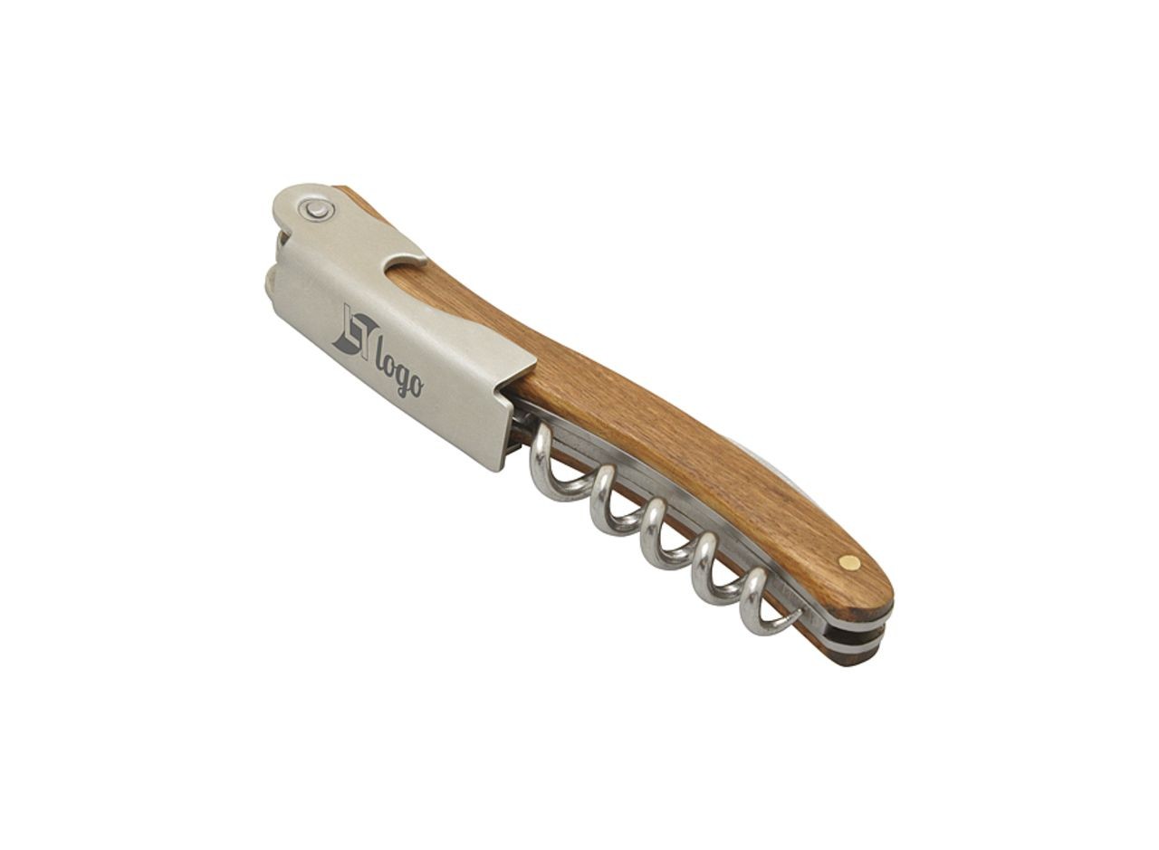 Tire-bouchon professionnel avec une mèche 5 spirales en acier inoxydable, une lame coupe-collerette microdentée et un décapsuleur. Livrés avec un étui de ceinture en nylon 420D gris chiné dans un coffret cadeau en carton noir. Une lame en acier 420 qui assure la meilleure résistance possible à l’oxydation et offre un affûtage facilité. Un système de blocage de lame avec cran forcé utilisé sur la plupart des classiques de la coutellerie. Une mèche 5 spirales permettant de venir à bout de tous les bouchons, même les plus abimés. Présentés dans un élégant coffret cadeau avec un astucieux système de fermeture aimantée. Fabriqué en Chine.