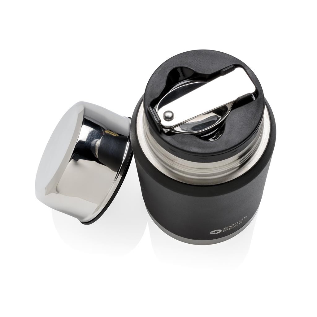 Boite alimentaire 500ml faite en acier inoxydable de haute qualité 18/8 qui n’absorbe aucune saveur ou odeur. La finition noire par poudrage électrostatique est faite pour durer, pas de décoloration ou craquelure possible ! La paroi intérieure est couverte de cuivre pour une conductivité maximum qui permet de garder les boissons chaudes pour 8h et les froides pour 24h. Une cuillère pliable en acier inoxydable 18/8 est incluse dans le couvercle. Lavage à la main uniquement. Fabriqué en Chine.