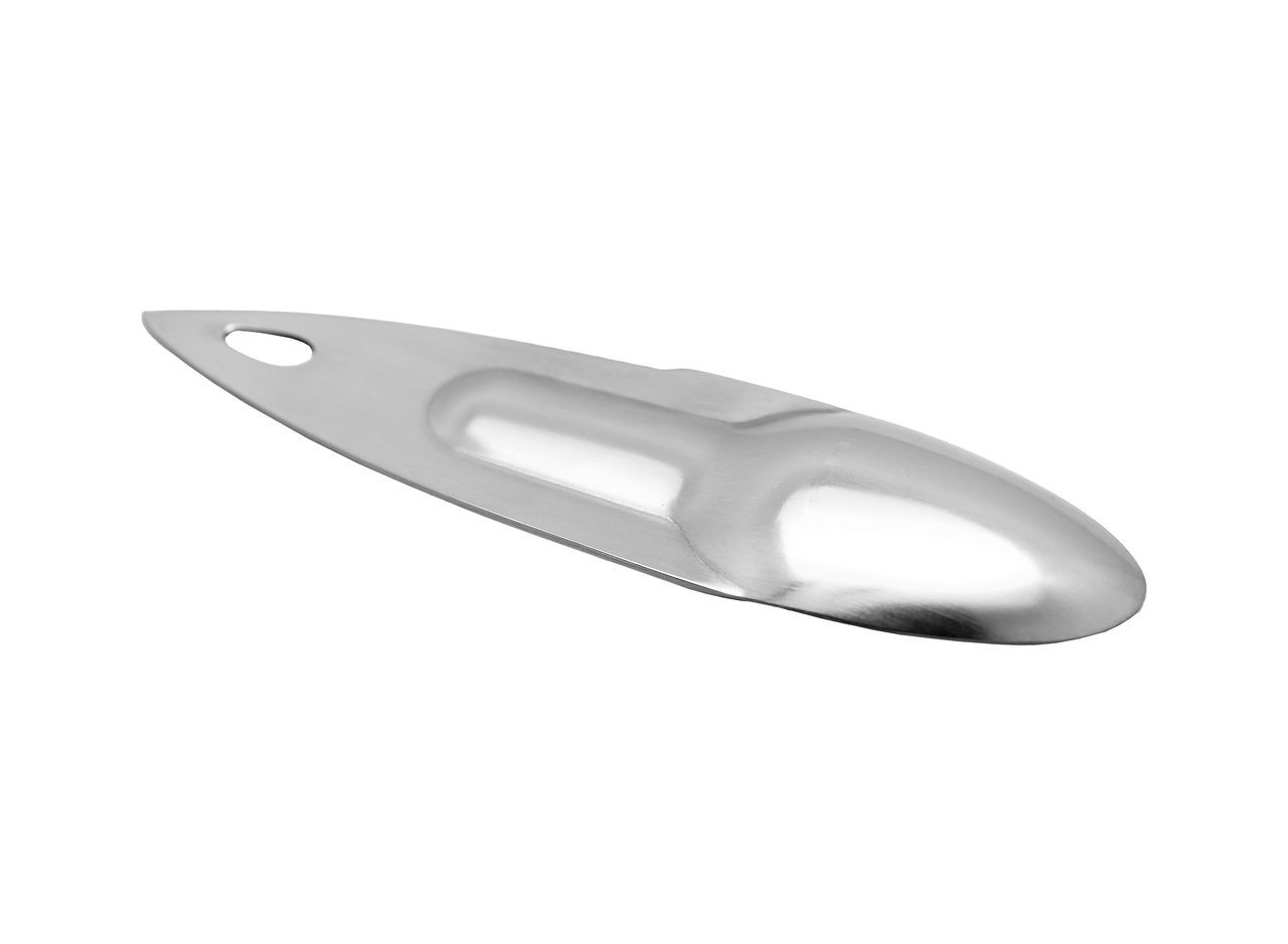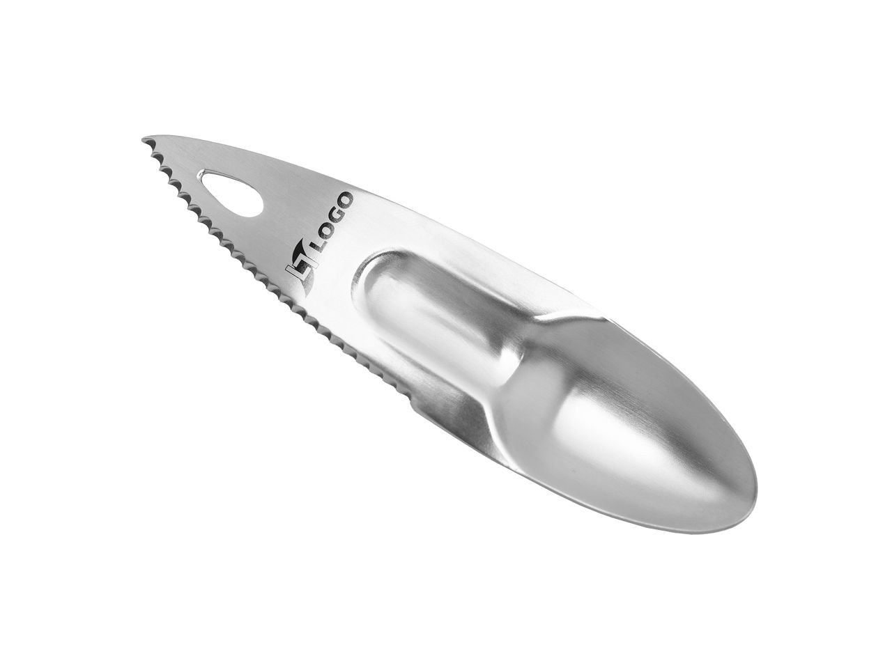 Acier inoxydable 304 à usage alimentaire avec finition miroir. Lame dentée. Trou de suspension. Acier inoxydable 304 (avec finition miroir) pour une résistance optimale et une parfaite conformité alimentaire. Lame dentée sur un côté du manche permettant de couper et de déguster un kiwi, un avocat ou tout autre fruit avec ce seul couvert. Emplacement creusé sur le manche permettant une meilleure tenue avec le pouce et offrant une plus grande résistance à la torsion. Trou de suspension permettant de l’accrocher dans une cuisine ou sur un sac. Passe au lave-vaisselle. Fabriqué en Chine.