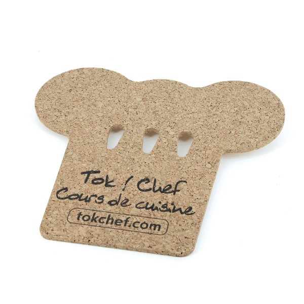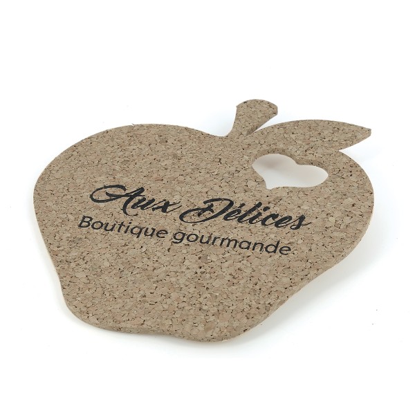 Dessous de plat sur-mesure. Faites la forme que vous souhaitez ! Liège. Epaisseur : 5 mm. Risque de perte dans les lettrages du fait de la matière. Un marquage 1 couleur 1 position inclus (hors frais techniques).