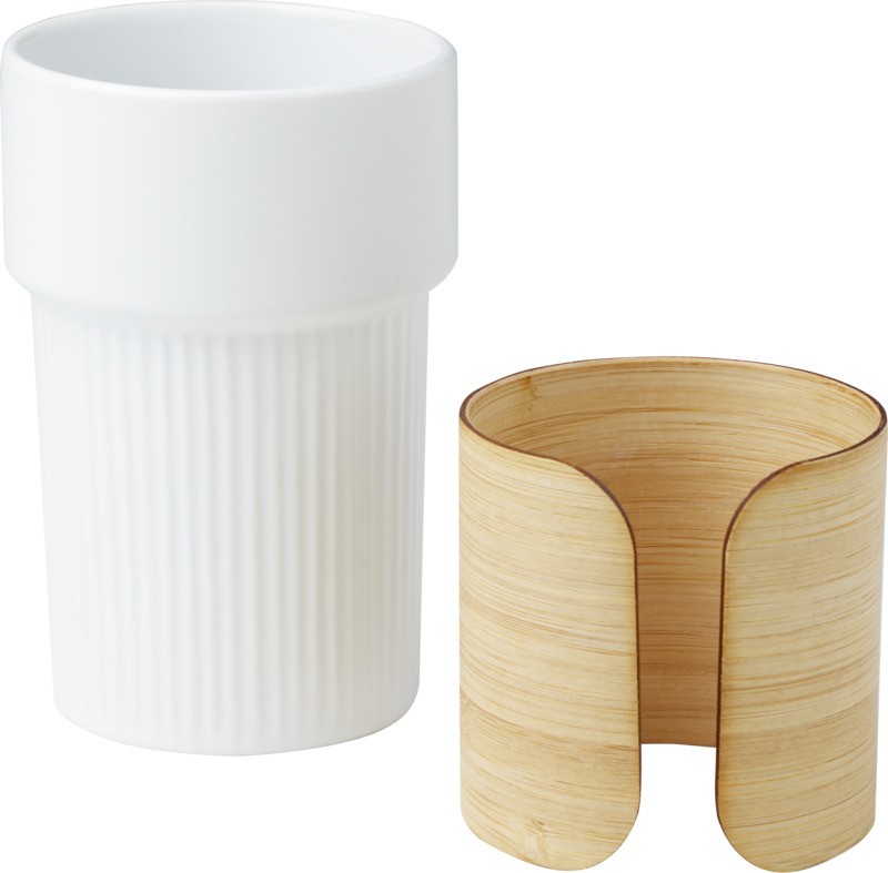L’élégant gobelet en céramique Fika est doté d’un couvercle amovible en bambou, idéal pour déguster des boissons chaudes. Le bambou utilisé provient de sources durables, respectueuses de l’environnement et socialement responsables. Capacité : 340 ml. Livré dans un coffret en carton recyclé. 94% Grès. Fabriqué en Chine.