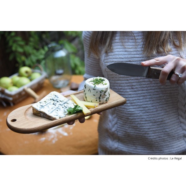 Planche apéro en chêne Français millésimé, traitée à l’huile de pépin de raisin. Cordelette en coton macramé tricolore fabriquée en France.La couleur de bois peut varier selon les arrivages. Un marquage gravure laser 1 position inclus (hors frais techniques).