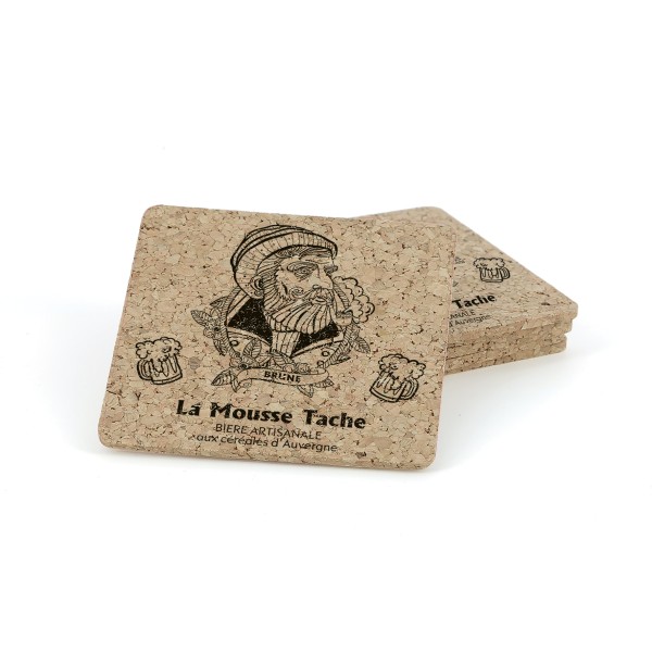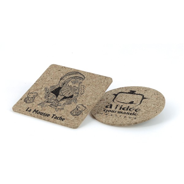 Sous-verre sur-mesure. Faites le sous-bock à la forme que vous souhaitez ! Liège. Epaisseur : 3 mm. Un marquage 1 couleur en sérigraphie 1 face inclus (hors frais techniques).