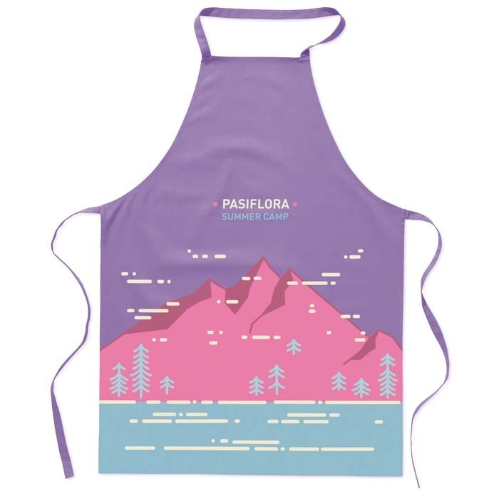 Tablier à bavette en coton blanc 190 g/m² imprimé numériquement partout. L’ensemble du tablier peut être imprimé intégralement (bord à bord) avec n’importe quel motif. Les coûts d’impression sont liés à la taille du dessin. Un design avec une couverture allant jusqu’à 50% signifie qu’au moins 50% du tablier n’est pas imprimé et est dans sa couleur blanche d’origine. Jusqu’à 1 000 pcs, la couleur des tresses (sangles) est blanche. Pour des quantités supérieures, la couleur des tresses peut être différente mais fera l’objet d’une demande spéciale. Fabriqué en Asie. Un marquage quadri sur toute la surface et frais techniques inclus.