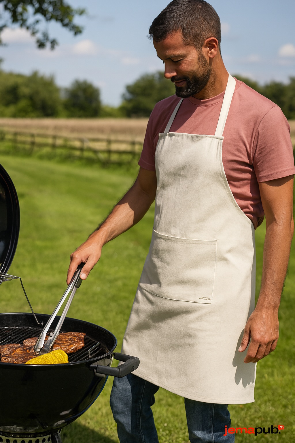 Tissé et fabriqué en France – 50% coton recyclé – 50% coton, tissu sanforisé pour une plus grande résistance. Tablier long avec poche à 2 compartiments et coutures renforcées, lanière de cou fixe de 61 cm. Larges liens à la taille de chaque côté du tablier, étiquette gros grain »Made in France » cousue dans la poche.