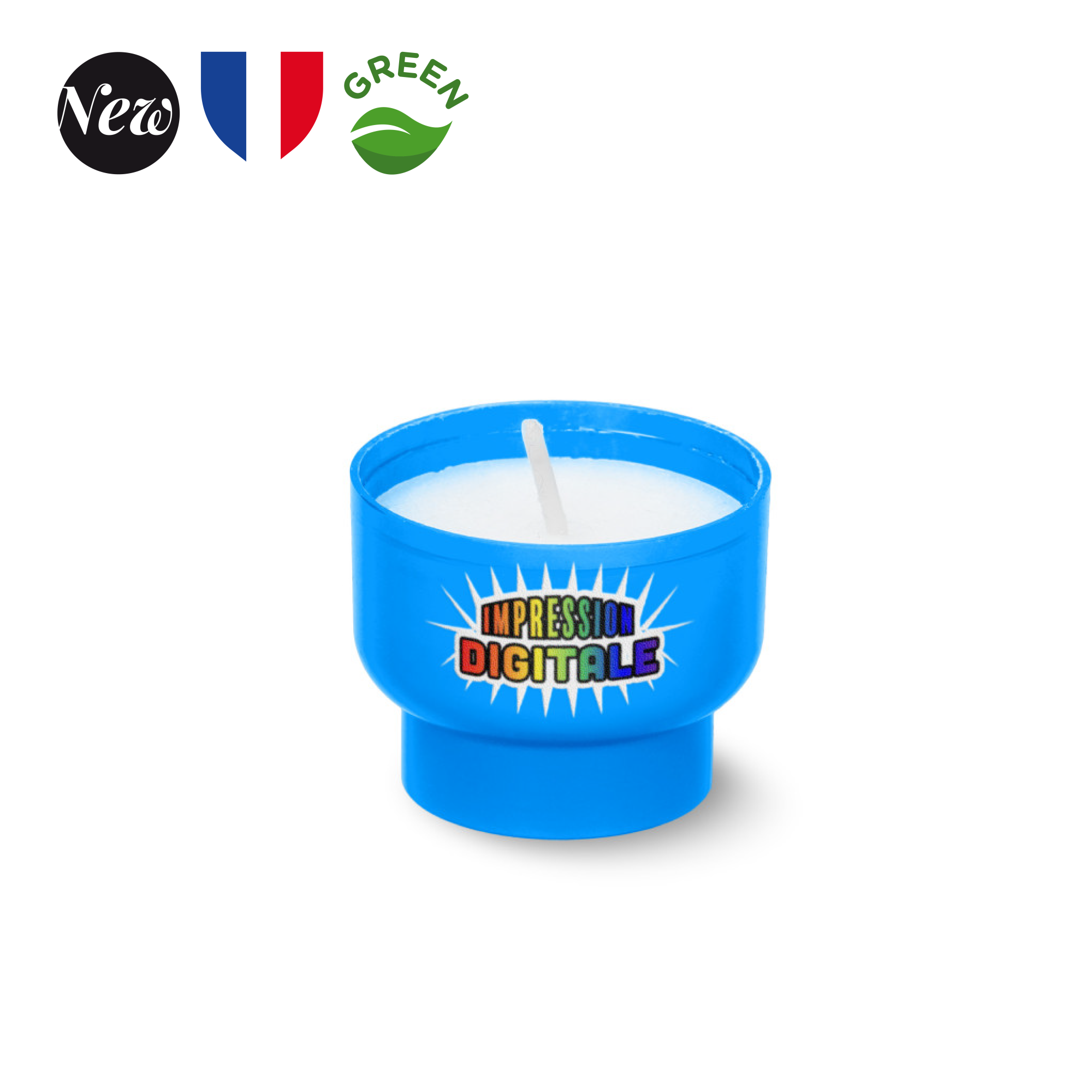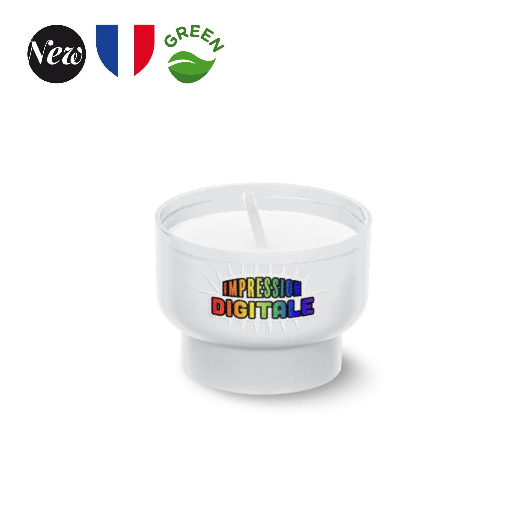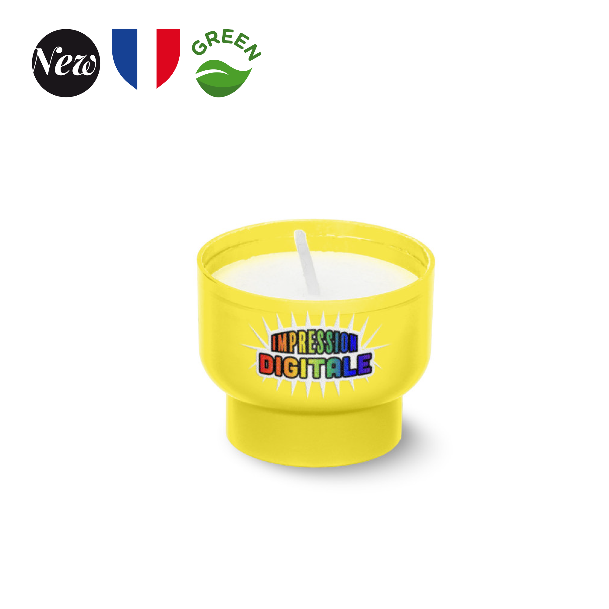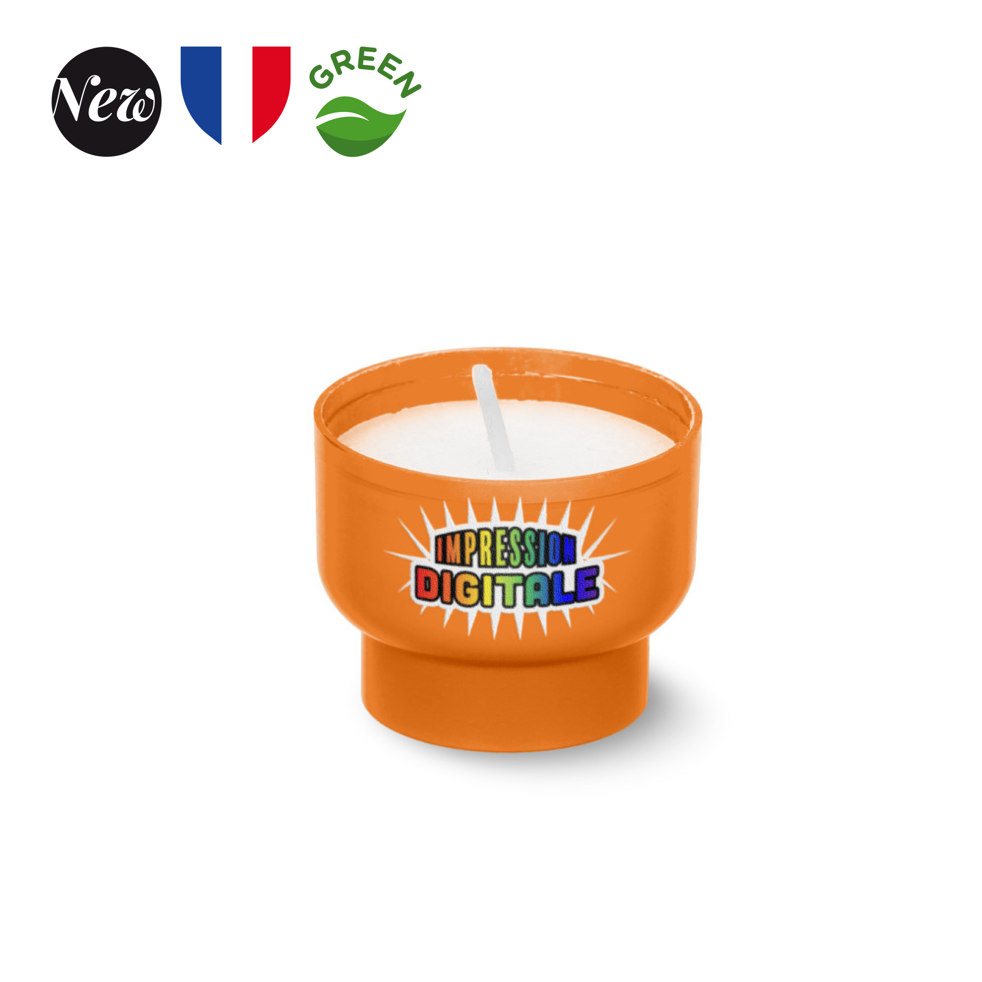 Veilleuse éco-responsable : un éclairage doux et pratique! Découvrez notre veilleuse fabriquée en France, avec un godet en amidon de maïs et de blé. Avec un diamètre de 45 mm et une hauteur de 35 mm, elle s’intègre facilement dans tous les espaces. Sa durée de combustion de 6 heures offre une ambiance chaleureuse. Elle s’adapte à tous vos besoins décoratifs. L’impression digitale en une position et frais techniques (incluse) permet une personnalisation unique. Vendue par carton de 90 pièces, un mix de couleurs est possible, avec un minimum de 90 pièces par couleur. Ajoutez une touche de lumière tout en respectant l’environnement !