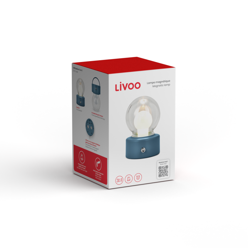 Lampe avec attache magnétique, interrupteur à bascule. Multi usage : lampe à poser, lanterne et veilleuse. Lampe d’ambiance à LED