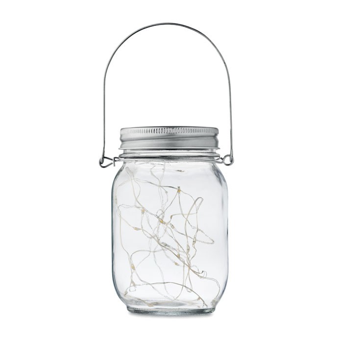 Pot solaire pour l’extérieur avec guirlande lumineuse de 20 LED. Créez une atmosphère agréable dans votre jardin en plaçant ce pot sur votre table ou votre terrasse. Les petites lumières LED créent un bel effet dans l’obscurité. La batterie interne sera chargée en la plaçant au soleil ou à la lumière du jour. Il y a un crochet sur le dessus, vous pouvez donc transporter ou suspendre le pot. Lorsque la batterie de 300mAh est complètement chargée, elle donne de la lumière pendant environ 5 heures. NI-MH inclus. Étanchéité IP44.