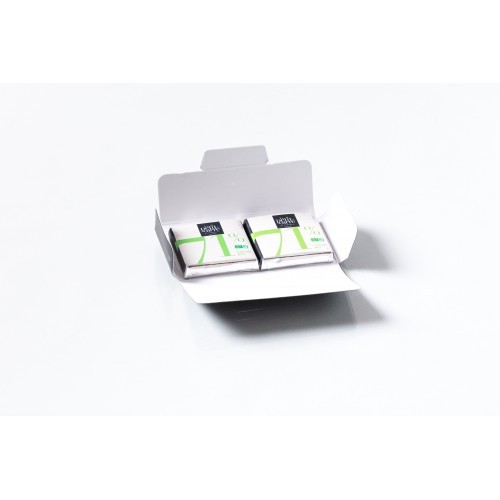 Carte personnalisable 300g de dimension ouverte 110x110mm avec impression quadri recto à base d’encre végétale sur un carton FSC. 2 carrés de chocolat 4gr avec un goût intense en cacao avec des notes de fruits rouges en fin de bouche. Le chocolat 71% Bio est un chocolat très agréable avec une belle fluidité. Ce chocolat apprécie particulièrement les accords avec les fruits rouges tels que la groseille ou la framboise. A conserver dans un endroit frais et sec sans odeur entre 12 et 18°C, DLUO : 24 mois.
