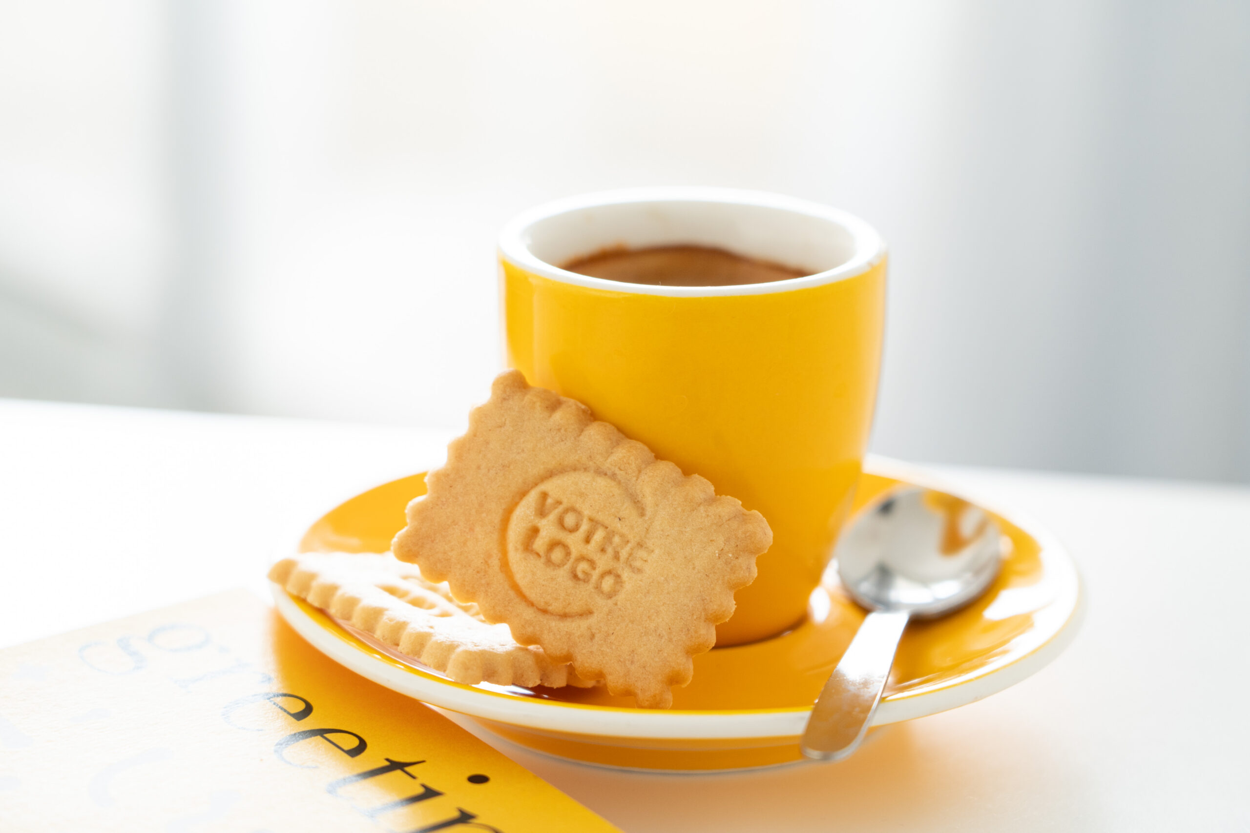 Mini biscuits de 5gr au parfum pur beurre, caramel beurre salé, citron et salés. Avec ingrédients naturels (farine de blé, beurre, sucre blanc, sucre glace, œufs) et sans conservateur. Allergènes : Présence dans l’atelier de fabrication de fruits à coque, arachides, produits laitiers, blé, œuf. Conservation pendant 6 mois. Livré sous conditionnement individuel d’origine végétale, biodégradable et compostable. Un marquage en creux 1 face et frais techniques inclus.