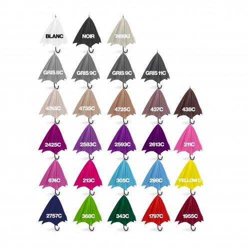 Coloris : blanc, gris 8C, gris 9C, gris 11C, noir, rouge 1795C, bordeaux 1955C, rose 211C, rose 213C, mauve 674C, violet 2425C, violet 2593C, violet 2613C, vert 368C, vert 343C, jaune, 7499U, gris 4745C, gris 4725C, gris 437C, gris 438C, bleu 305C, bleu 298C, bleu 2757C.