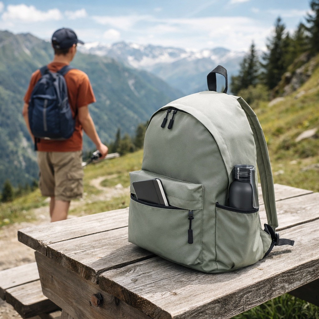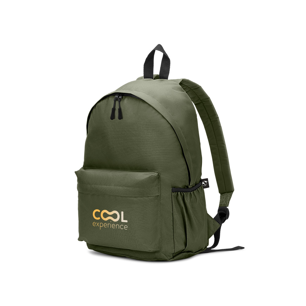Sac à dos classique 20L au design intemporel et épuré en polyester recyclé 600D. 1 compartiment principal, 1 poche avant zippée et fabriqué en Chine.