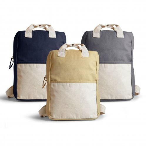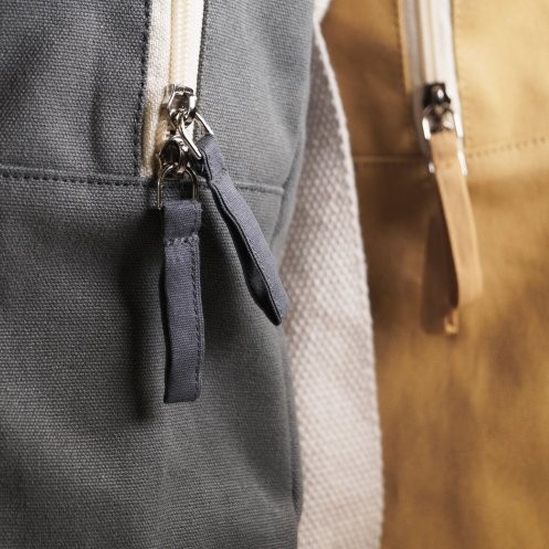 Sac a dos 100% coton biologique 340g/m²; doublure coton biologique 130g/m², matière première issue de filière certifiée GOTS. Fermeture zippée avec poche frontale fermée par un Velcro – 27 x H-18cm + poche intérieure 20 x H-15cm. Bretelles ajustables, 2 poignées attachables par bouton pression.