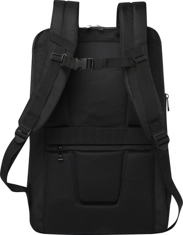 Le sac à dos pour ordinateur portable extensible et robuste Expedition Pro, certifié GRS, est le choix idéal pour les professionnels jonglant entre déplacements et travail. Le sac à dos offre une capacité étendue équivalente à celle d’un bagage à main. Il est fabriqué en rPET hydrofuge, associé à des éléments en PU de première qualité et à une doublure en rPET. Il comprend un compartiment dédié pour ordinateur portable 17″ et une pochette pour tablette, un compartiment extensible pour les vêtements, une grande poche étanche pour les articles de toilette et un compartiment avant spacieux doté de multiples poches de rangement à l’intérieur et à l’extérieur. Il est équipé de bretelles rembourrées et réglables, d’une pochette intégrée pour les cartes, d’une boucle pour les lunettes de soleil, d’un support en filet moulé et d’une poignée rembourrée, ce qui garantit un confort de transport maximal et une grande commodité. Capacité : 35 litres. Sans PVC. Polyester recyclé certifié GRS. Fabriqué en Chine.